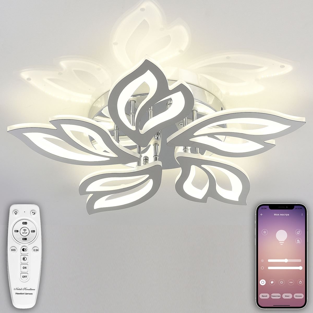 Роскошная модель Innovation Style 83016 от немецкой компании Natali Kovaltseva относится к коллекции Innovation Style и отлично подойдет для установки на низкий потолок в гостиной, оформленной в стиле хай-тек. Потолочная светодиодная люстра Natali Kovaltseva Innovation Style 83016 с плафонами в форме цветов осветит помещение площадью 25 кв. м. холодным светом. Осветительный элемент встроен в конструкцию и не требует приобретения дополнительных лампочек. Прибор произведен с использованием материалов: пластик, металл и акрил и может использоваться для натяжного потолка. В комплект поставки входит пульт дистанционного управления. Основным цветом товара является Хромовый, Серебристо-стальной и Белый. Потолочная светодиодная люстра Innovation Style 83016 с диммером продается по цене 7827 руб, с дисконтом 31% - ваша выгода при покупке составит 3545 руб. Торопитесь сделать заказ в интернет-магазине Top Otdelka.