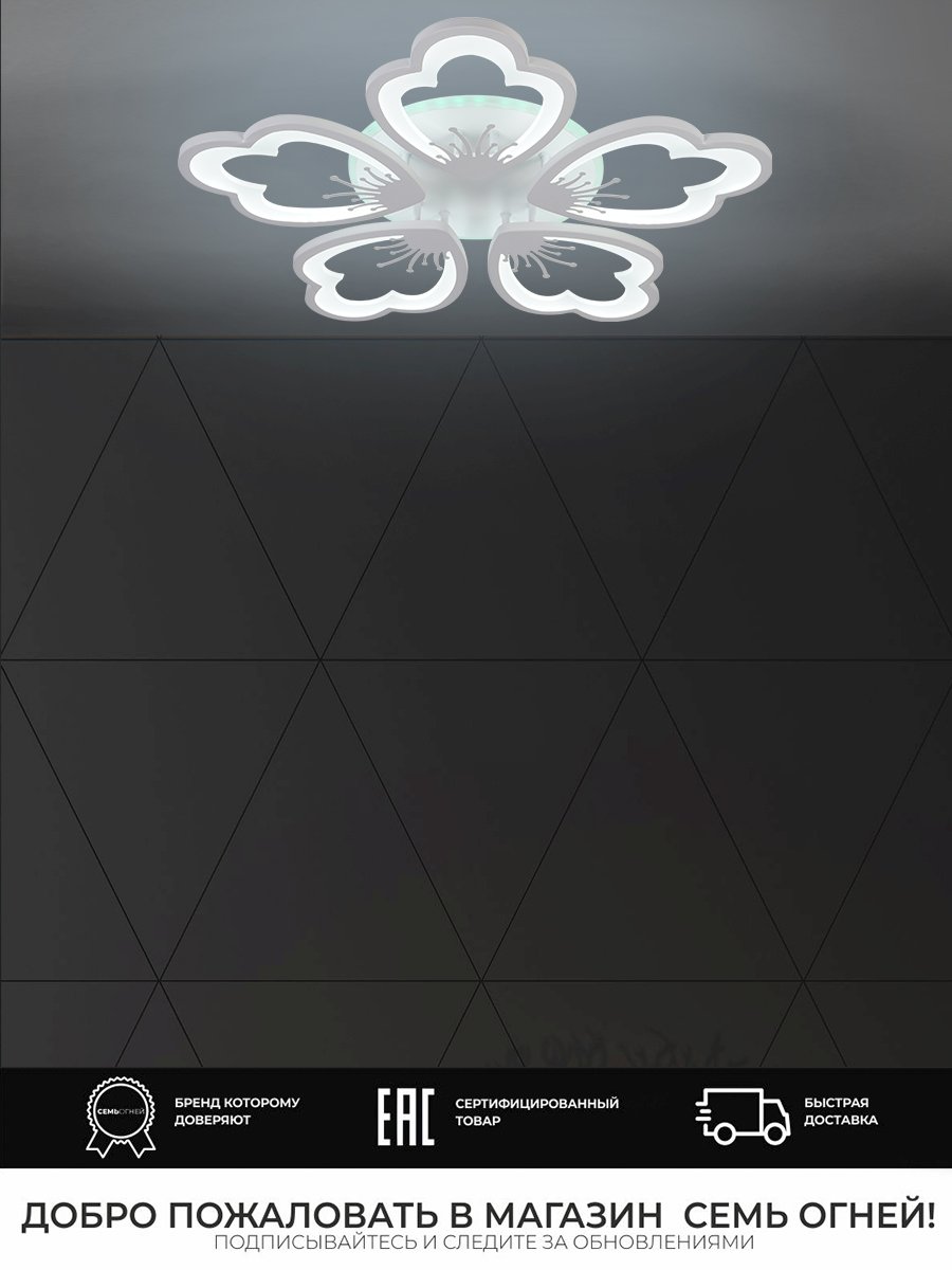 Поразительная модель SF5028/5C-WT-RGB от российской компании Seven Fires относится к коллекции Ferenk и отлично подойдет для установки на низкий потолок спальни, оформленной в стиле хай-тек. Потолочная светодиодная люстра Seven Fires Ferenk SF5028/5C-WT-RGB с плафонами в форме цветов осветит помещение площадью 20 кв. м. холодным светом. Осветительный элемент встроен в конструкцию и не требует приобретения дополнительных лампочек. Прибор произведен с использованием материалов: металл и акрил, металл и акрил и может использоваться для натяжного потолка. В комплект поставки входит пульт дистанционного управления. Основным цветом товара является Белый. Потолочная светодиодная люстра SF5028/5C-WT-RGB с диммером продается по цене 5920 руб. Торопитесь сделать заказ в интернет-магазине Top Otdelka.