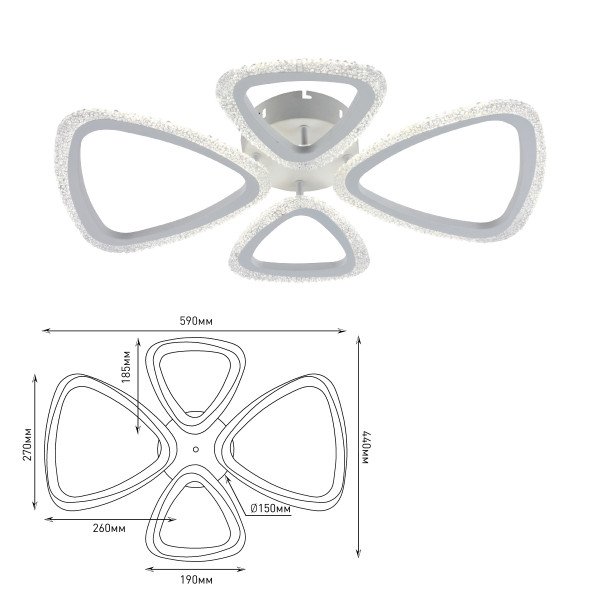 Восхитительная модель 6096-104 со встроенным выключателем от итальянской компании Rivoli относится к коллекции Kayla и отлично подойдет для установки на низкий потолок в гостиной, оформленной в стиле модерн. Потолочная светодиодная люстра Rivoli Kayla 6096-104 Б0054905 с треугольными плафонами осветит помещение площадью 17 кв. м. холодным светом. Осветительный элемент встроен в конструкцию и не требует приобретения дополнительных лампочек. Прибор произведен с использованием материалов: металл и акрил и может использоваться для натяжного потолка. В комплект поставки входит пульт дистанционного управления. Основным цветом товара является Белый. Потолочная светодиодная люстра 6096-104 Б0054905 продается по цене 4905 руб. Торопитесь сделать заказ в интернет-магазине Top Otdelka.