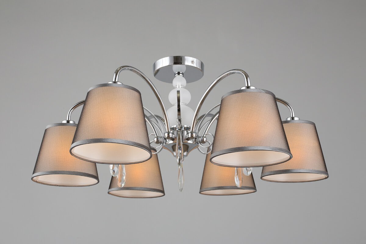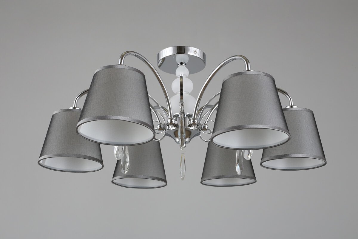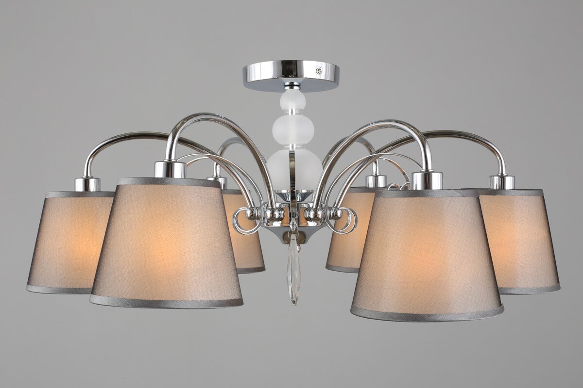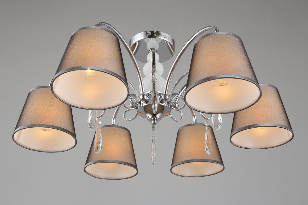 Особенная модель OML-66707-06 от китайской компании Omnilux относится к коллекции Recco и отлично подойдет для установки на низкий потолок спальни, оформленной в стиле модерн. Потолочная люстра Omnilux Recco OML-66707-06 с плафонами-конусами осветит помещение площадью 13.3 кв. м. Производитель Omnilux рекомендует использовать для устройства лампы накаливания с цоколем E14 и мощностью 40 W. Прибор произведен с использованием материалов: текстиль, металл и ткань и может использоваться для натяжного потолка. Основным цветом товара является Серый и Серебристо-стальной. Потолочная люстра OML-66707-06 продается по цене 9510 руб. Торопитесь сделать заказ в интернет-магазине Top Otdelka.