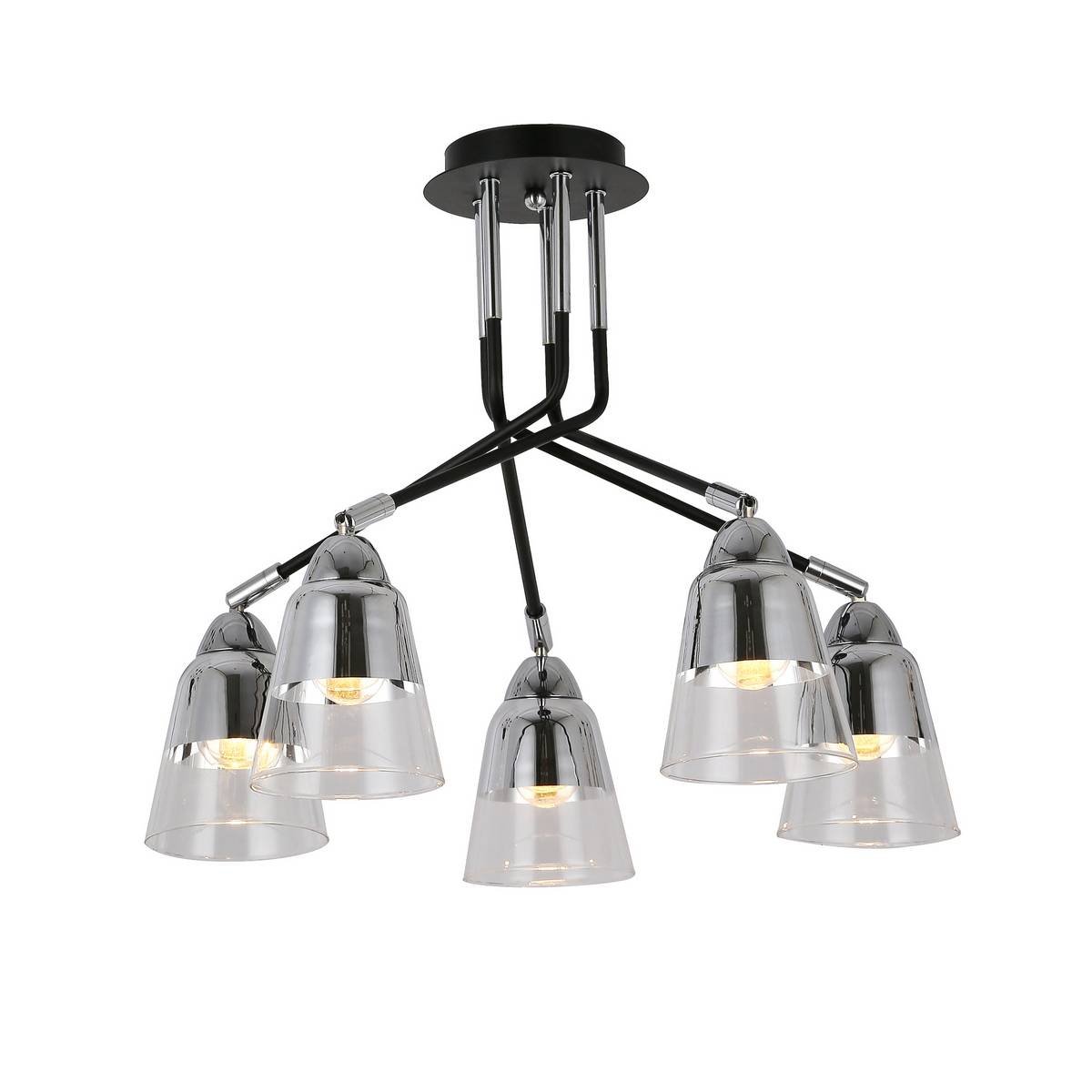 Элегантная модель SLE102902-05 от итальянской компании Evoluce относится к коллекции Lirino и отлично подойдет для установки на потолок в гостиной, оформленной в стиле модерн. Потолочная люстра Evoluce Lirino SLE102902-05 с плафонами-конусами осветит помещение площадью 11.1 кв. м. Производитель Evoluce рекомендует использовать для устройства лампы накаливания с цоколем E27 и мощностью 40 W. Прибор произведен с использованием материалов: стекло и металл. Основным цветом товара является Черный и Прозрачный. Потолочная люстра SLE102902-05 продается по цене 6696 руб. Торопитесь сделать заказ в интернет-магазине Top Otdelka.