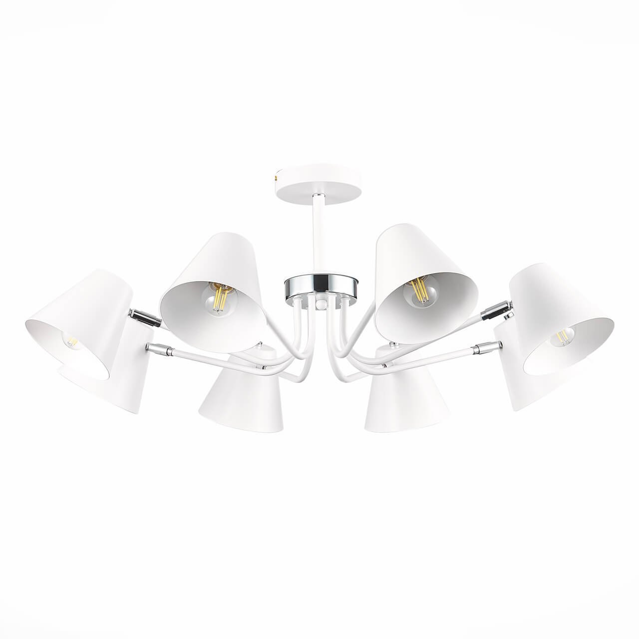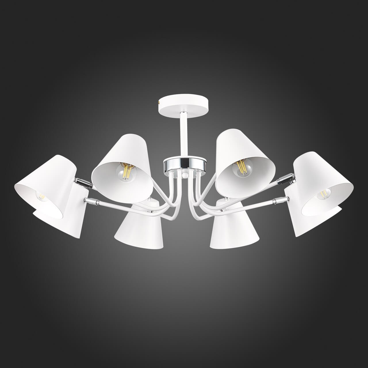 Незаурядная модель SLE106702-08 от итальянской компании Evoluce относится к коллекции Lere и отлично подойдет для установки на низкий потолок в гостиной, оформленной в стиле модерн. Потолочная люстра Evoluce Lere SLE106702-08 с плафонами-конусами осветит помещение площадью 26.7 кв. м. Производитель Evoluce рекомендует использовать для устройства лампы накаливания с цоколем E27 и мощностью 60 W. Прибор произведен с использованием материала: металл и может использоваться для натяжного потолка. Основным цветом товара является Белый и Серебристо-стальной. Потолочная люстра SLE106702-08 продается по цене 8770 руб. Торопитесь сделать заказ в интернет-магазине Top Otdelka.