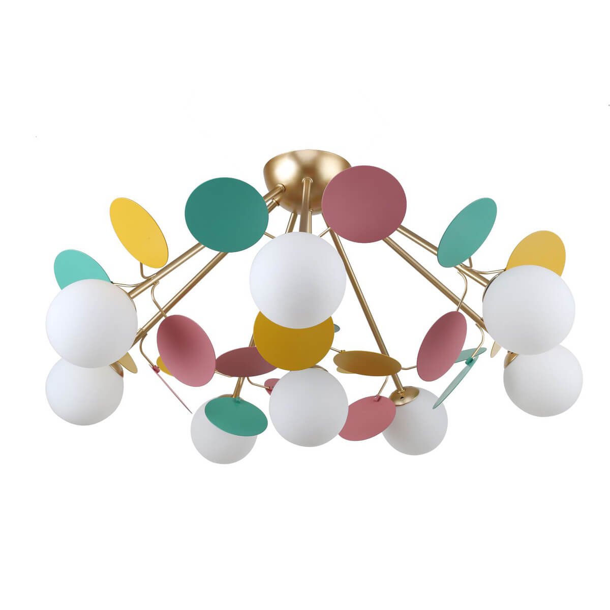 Изумительная модель 2772-8P от немецкой компании F-Promo относится к коллекции Multy Bliss и отлично подойдет для установки на потолок детской, оформленной в современном стиле. Потолочная люстра F-Promo Bliss 2772-8P с плафонами в виде шаров осветит помещение площадью 11.1 кв. м. Производитель F-Promo рекомендует использовать для устройства галогеновые лампы с цоколем G9 и мощностью 25 W. Прибор произведен с использованием материалов: стекло и металл и может использоваться для натяжного потолка. Основным цветом товара является Разноцветный, Золотой и Кремовый. Потолочная люстра Bliss 2772-8P продается по цене 18100 руб. Торопитесь сделать заказ в интернет-магазине Top Otdelka.