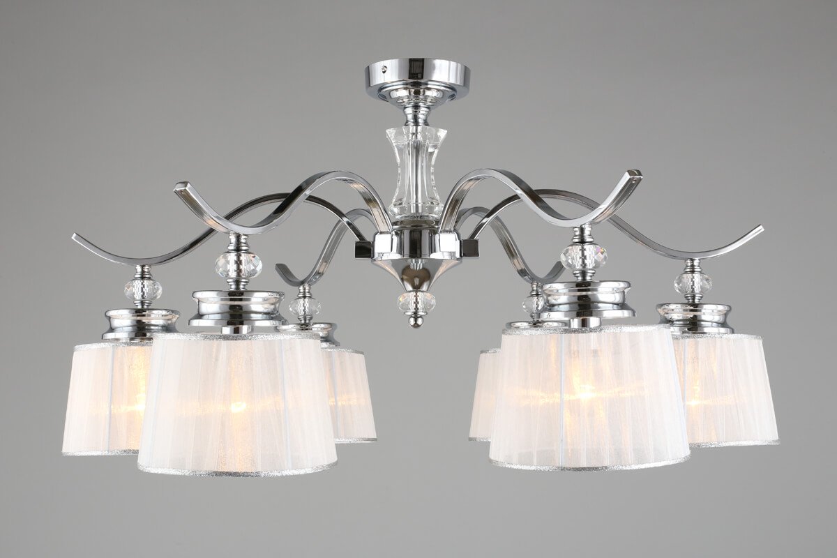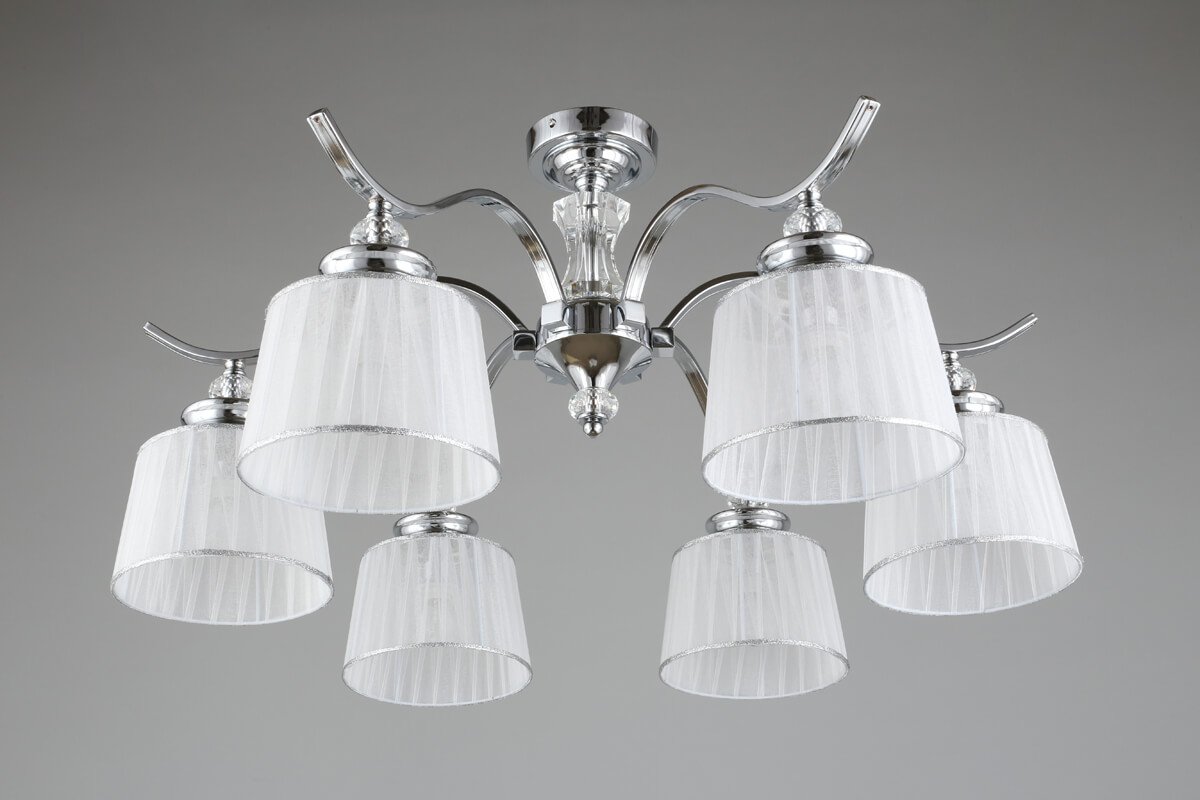 Неповторимая модель OML-88407-06 от китайской компании Omnilux относится к коллекции Arosio и отлично подойдет для установки на потолок спальни, оформленной в классическом стиле. Потолочная люстра Omnilux Arosio OML-88407-06 с плафонами-конусами осветит помещение площадью 14 кв. м. Производитель Omnilux рекомендует использовать для устройства лампы накаливания с цоколем E14 и мощностью 40 W. Прибор произведен с использованием материалов: текстиль, металл и ткань и может использоваться для натяжного потолка. Основным цветом товара является Белый и Серебристо-стальной. Потолочная люстра OML-88407-06 продается по цене 13290 руб, с дисконтом 30% - ваша выгода при покупке составит 5690 руб. Торопитесь сделать заказ в интернет-магазине Top Otdelka.