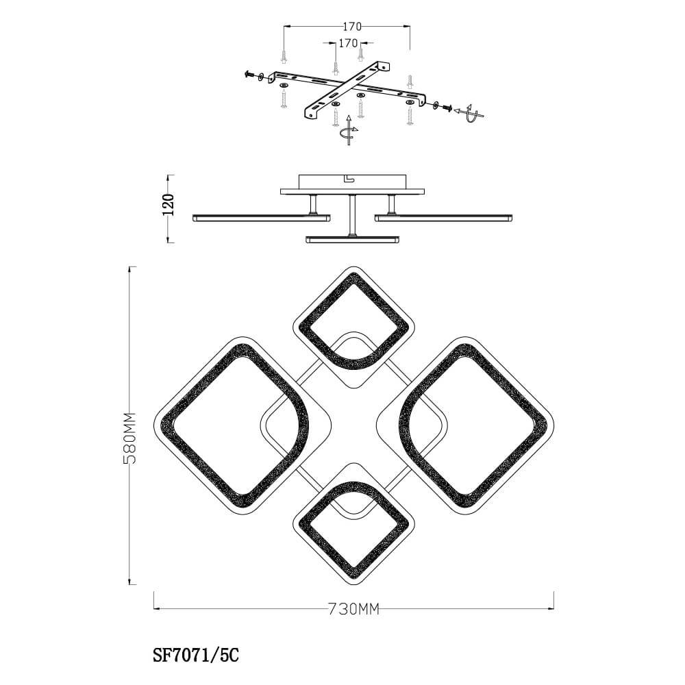 Интересная модель SF7071/5C-WT-RGB от российской компании Seven Fires относится к коллекции Kejl. Потолочная люстра Seven Fires Kejl SF7071/5C-WT-RGB с ромбическими плафонами осветит помещение площадью 25 кв. м. холодным светом. Осветительный элемент встроен в конструкцию и не требует приобретения дополнительных лампочек. Прибор произведен с использованием материалов: металл и акрил и может использоваться для натяжного потолка. В комплект поставки входит пульт дистанционного управления. Основным цветом товара является Белый. Потолочная люстра SF7071/5C-WT-RGB с диммером продается по цене 6540 руб. Торопитесь сделать заказ в интернет-магазине Top Otdelka.