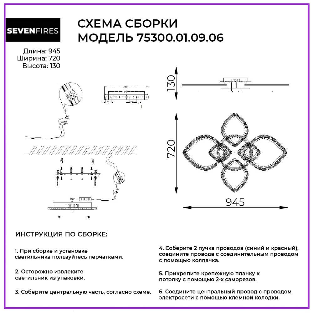 Изумительная модель 75300.01.09.06 от российской компании Seven Fires относится к коллекции Alia и отлично подойдет для установки на потолок прихожей, оформленной в стиле хай-тек. Потолочная люстра Seven Fires Alia 75300.01.09.06 с декоративными плафонами осветит помещение площадью 24 кв. м. холодным светом. Осветительный элемент встроен в конструкцию и не требует приобретения дополнительных лампочек. Прибор произведен с использованием материалов: пластик, металл и акрил и может использоваться для натяжного потолка. В комплект поставки входит пульт дистанционного управления. Основным цветом товара является Белый. Потолочная люстра 75300.01.09.06 с диммером продается по цене 9880 руб. Торопитесь сделать заказ в интернет-магазине Top Otdelka.