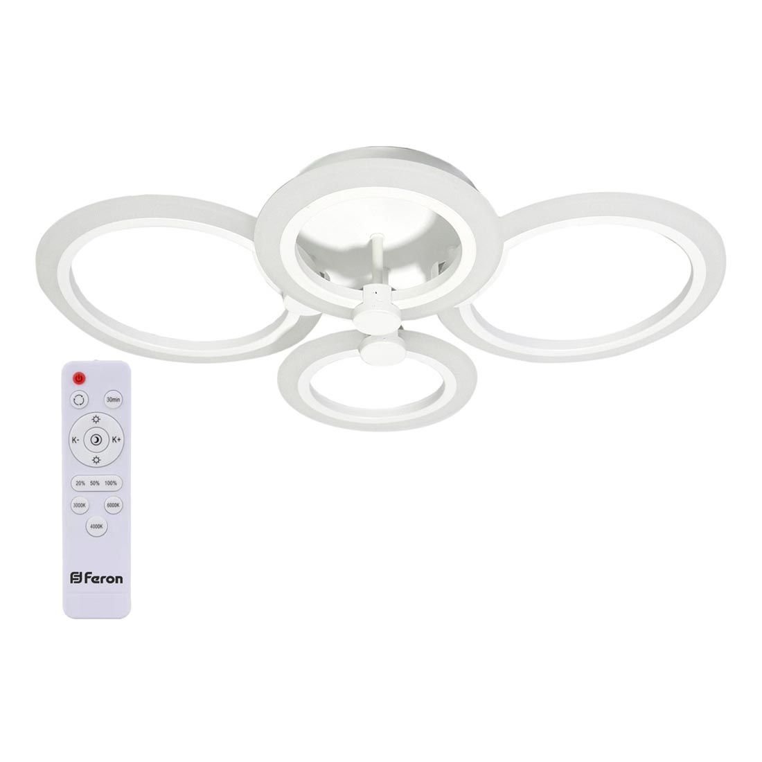 Невероятная модель 41669 от российской компании Feron относится к коллекции Elegance и отлично подойдет для установки на низкий потолок спальни, оформленной в современном стиле. Потолочная светодиодная люстра Feron Elegance AL5900 41669 с круглыми плафонами осветит помещение площадью 20 кв. м. холодным светом. Осветительный элемент встроен в конструкцию и не требует приобретения дополнительных лампочек. Прибор произведен с использованием материалов: пластик, сталь и акрил и может использоваться для натяжного потолка. В комплект поставки входит пульт дистанционного управления. Основным цветом товара является Белый. Потолочная светодиодная люстра AL5900 41669 с диммером продается по цене 5221 руб. Торопитесь сделать заказ в интернет-магазине Top Otdelka.