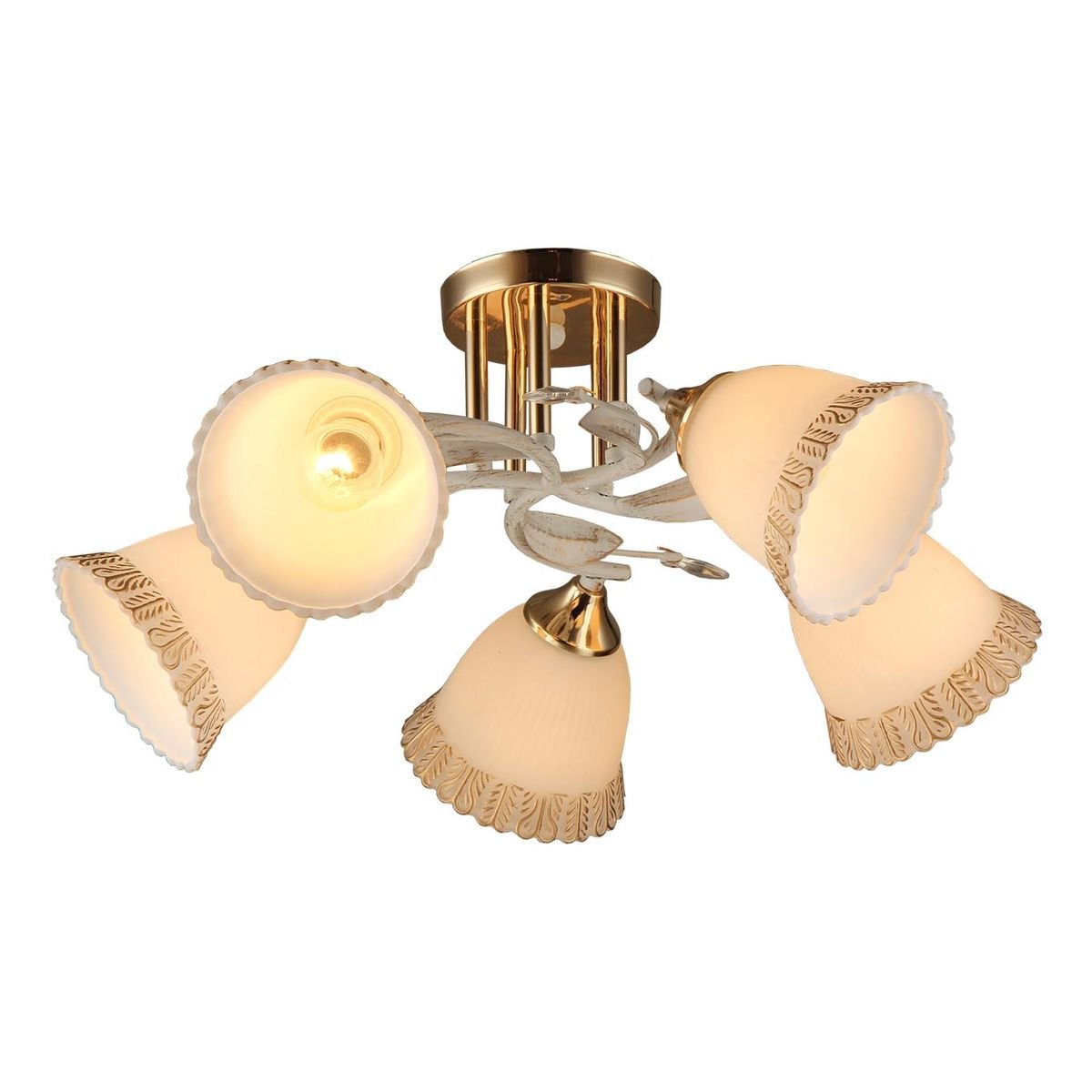 Потрясающая модель MD.2877-5-S WT+FGD от немецкой компании IMEX относится к коллекции MD.2877 и отлично подойдет для установки на низкий потолок кухни, оформленной в стиле прованс. Потолочная люстра IMEX MD.2877-5-S WT+FGD с плафонами в форме цветов осветит помещение площадью 20 кв. м. Производитель IMEX рекомендует использовать для устройства лампы накаливания с цоколем E27 и мощностью 60 W. Прибор произведен с использованием материалов: стекло и металл и может использоваться для натяжного потолка. Основным цветом товара является Белый и Золотой. Потолочная люстра MD.2877-5-S WT+FGD продается по цене 4990 руб. Торопитесь сделать заказ в интернет-магазине Top Otdelka.
