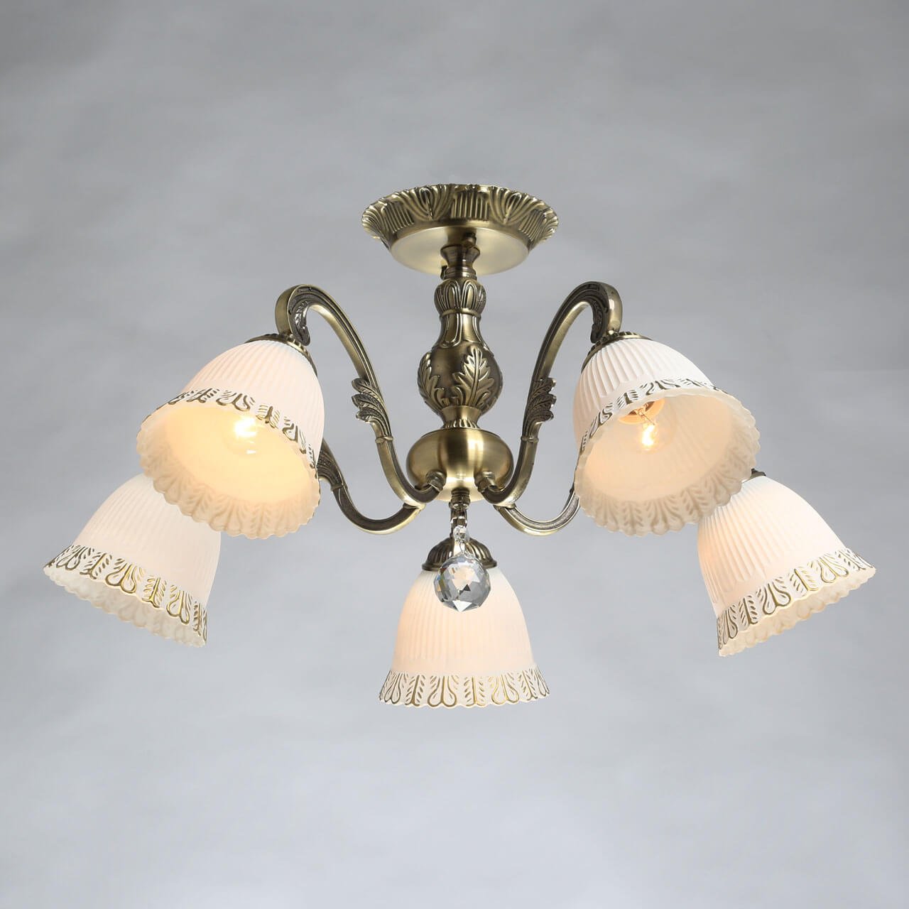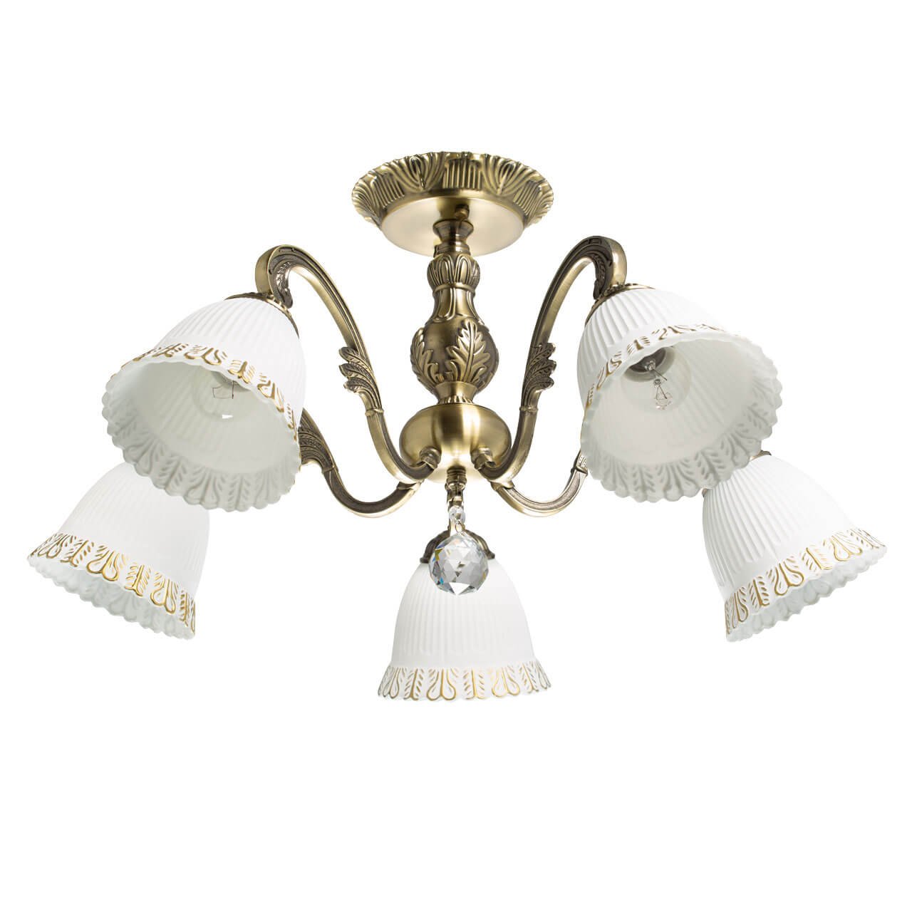Изящная модель 105010505 от немецкой компании De Markt относится к коллекции Ариадна и отлично подойдет для установки на низкий потолок спальни, оформленной в классическом стиле. Потолочная люстра De Markt City Ариадна 105010505 с плафонами в форме цветов осветит помещение площадью 10 кв. м. Производитель De Markt рекомендует использовать для устройства лампы накаливания с цоколем E27 и мощностью 40 W. Прибор произведен с использованием материалов: стекло и металл и может использоваться для натяжного потолка. Основным цветом товара является Белый и Бронзовый. Потолочная люстра City 105010505 продается по цене 10230 руб. Торопитесь сделать заказ в интернет-магазине Top Otdelka.