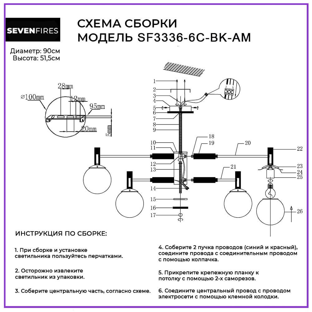 Феноменальная модель SF3336/6C-BK-AM от российской компании Seven Fires относится к коллекции Luara. Потолочная люстра Seven Fires Luara SF3336/6C-BK-AM с круглыми плафонами осветит помещение площадью 18 кв. м. Производитель Seven Fires рекомендует использовать для устройства лампы накаливания с цоколем E27 и мощностью 60 W. Прибор произведен с использованием материалов: металл и стекло. Основным цветом товара является Черный. Потолочная люстра SF3336/6C-BK-AM продается по цене 6100 руб. Торопитесь сделать заказ в интернет-магазине Top Otdelka.