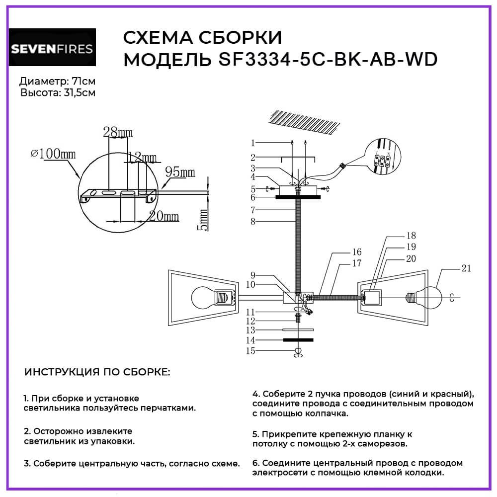 Незаурядная модель SF3334/5C-BK-AB-WD от российской компании Seven Fires относится к коллекции Sherlas. Потолочная люстра Seven Fires Sherlas SF3334/5C-BK-AB-WD с декоративными плафонами осветит помещение площадью 15 кв. м. Производитель Seven Fires рекомендует использовать для устройства лампы накаливания с цоколем E27 и мощностью 60 W. Прибор произведен с использованием материала: металл. Основным цветом товара является Черный. Потолочная люстра SF3334/5C-BK-AB-WD продается по цене 3460 руб. Торопитесь сделать заказ в интернет-магазине Top Otdelka.