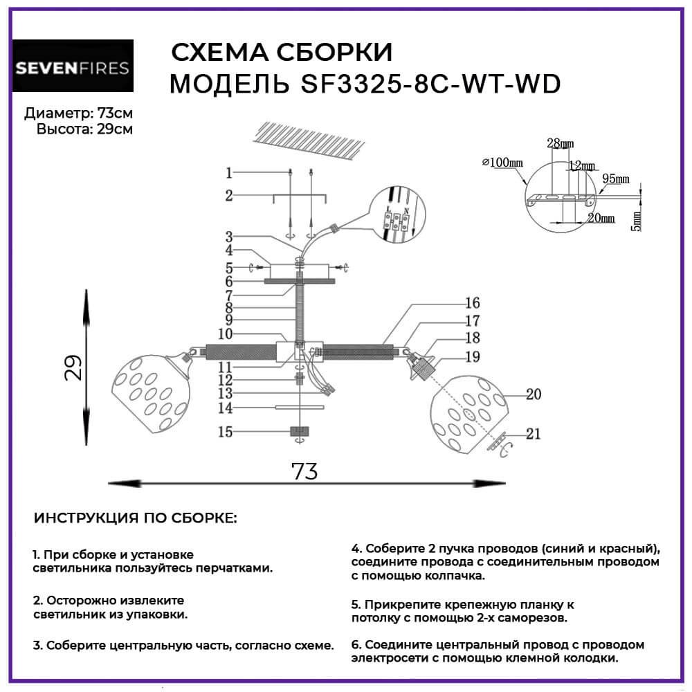 Непревзойденная модель SF3325/8C-WT-WD от российской компании Seven Fires относится к коллекции Trine. Потолочная люстра Seven Fires Trine SF3325/8C-WT-WD с круглыми плафонами осветит помещение площадью 24 кв. м. Производитель Seven Fires рекомендует использовать для устройства лампы накаливания с цоколем E27 и мощностью 60 W. Прибор произведен с использованием материала: металл. Основным цветом товара является Белый. Потолочная люстра SF3325/8C-WT-WD продается по цене 4920 руб. Торопитесь сделать заказ в интернет-магазине Top Otdelka.