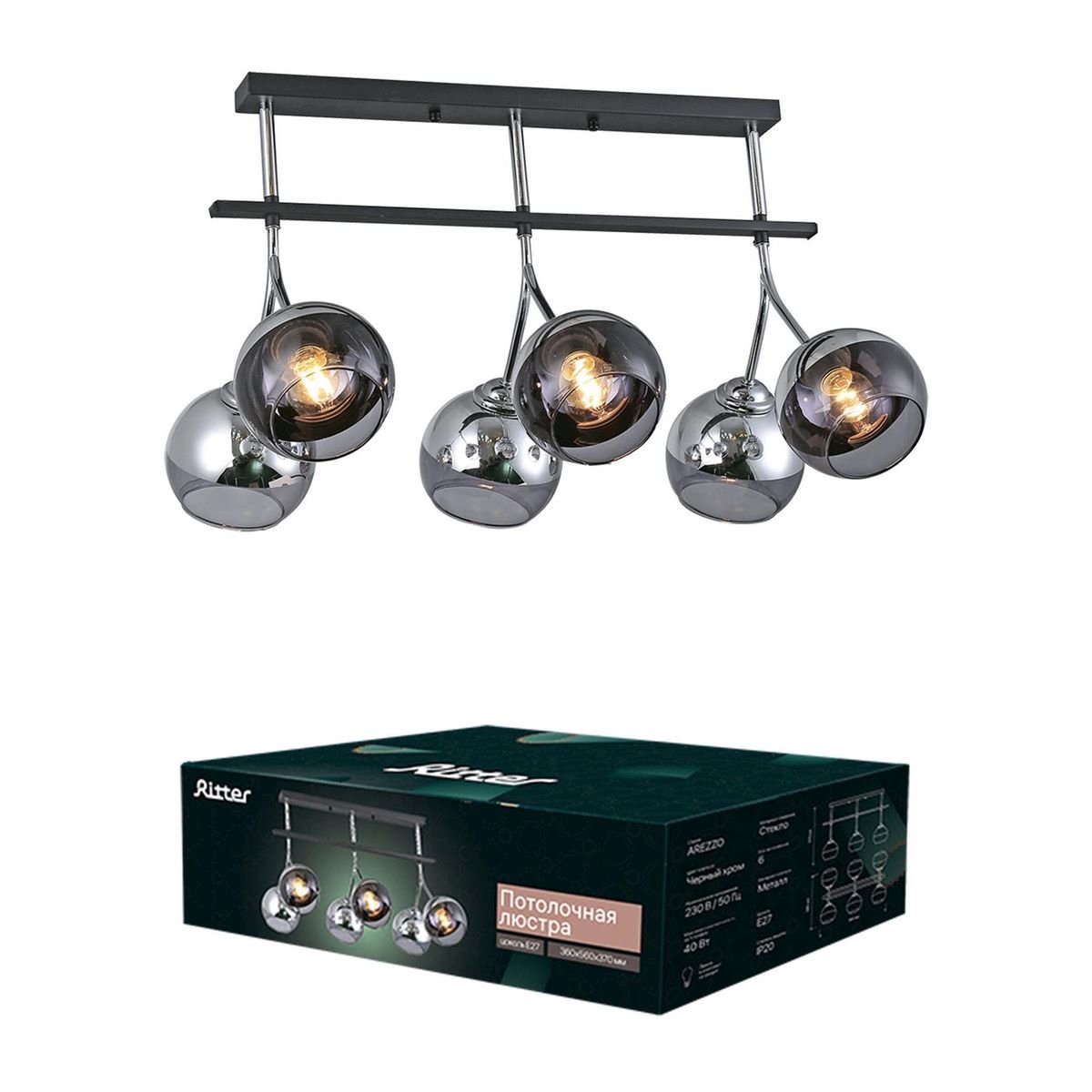 Прекрасная модель 52554 7 от немецкой компании Ritter относится к коллекции Arezzo и отлично подойдет для установки на потолок в гостиной, оформленной в стиле хай-тек. Потолочная люстра Ritter Arezzo 52554 7 с плафонами в виде шаров осветит помещение площадью 16 кв. м. Производитель Ritter рекомендует использовать для устройства лампы накаливания с цоколем E27 и мощностью 40 W. Прибор произведен с использованием материалов: стекло и металл и может использоваться для натяжного потолка. Основным цветом товара является Черный. Потолочная люстра 52554 7 продается по цене 6995 руб. Торопитесь сделать заказ в интернет-магазине Top Otdelka.