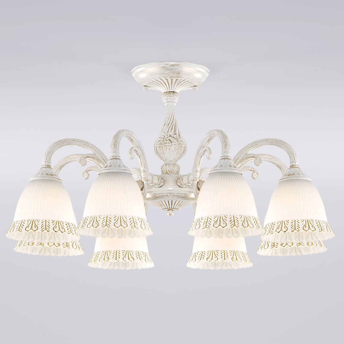 Восхитительная модель 60107/8 белый с золотом от российской компании Eurosvet относится к коллекции Campina и отлично подойдет для установки на потолок в гостиной, оформленной в стиле прованс. Потолочная люстра Eurosvet Campina 60107/8 белый с золотом с плафонами-конусами осветит помещение площадью 32 кв. м. Производитель Eurosvet рекомендует использовать для устройства лампы накаливания с цоколем E27 и мощностью 60 W. Прибор произведен с использованием материалов: стекло и металл и может использоваться для натяжного потолка. Основным цветом товара является Белый. Потолочная люстра 60107/8 белый с золотом продается по цене 16400 руб. Торопитесь сделать заказ в интернет-магазине Top Otdelka.