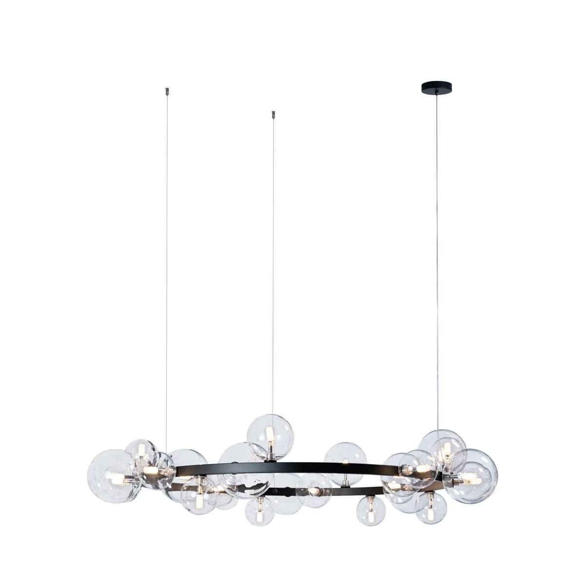 Незаурядная модель 10023/1200 от испанской компании Loft IT относится к коллекции Molecule и отлично подойдет для установки на низкий потолок больших залов, оформленных в стиле модерн. Подвесная люстра Loft IT Molecule 10023/1200 с плафонами в виде шаров осветит помещение площадью 480 кв. м. Производитель Loft IT рекомендует использовать для устройства светодиодные лампы с цоколем G9 и мощностью 40 W. Прибор произведен с использованием материалов: стекло и металл и может использоваться для натяжного потолка. В комплект поставки входят также лампы. Основным цветом товара является Черный и Прозрачный. Подвесная люстра 10023/1200 продается по цене 34700 руб. Торопитесь сделать заказ в интернет-магазине Top Otdelka.