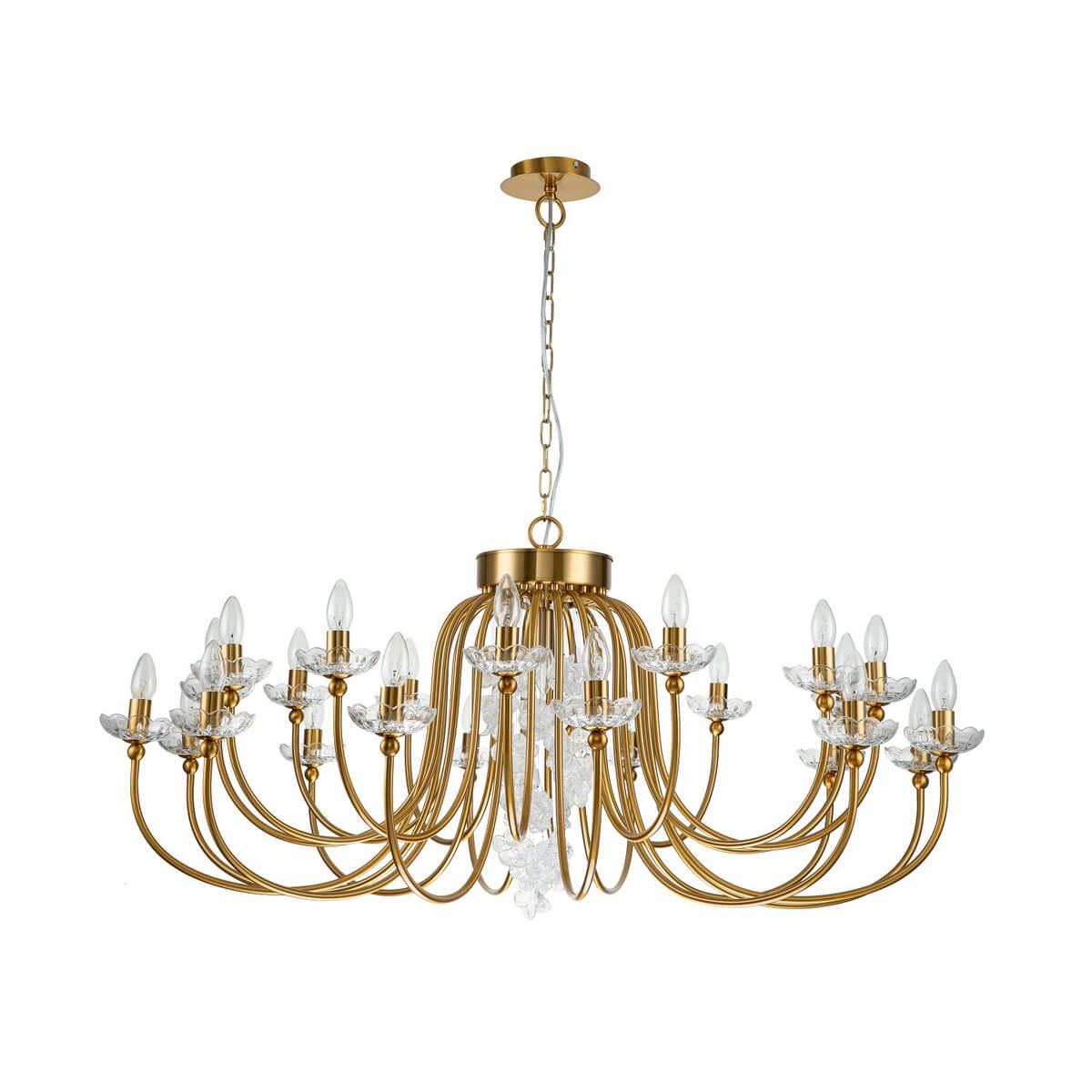 Несравненная модель 2871-25P от немецкой компании Favourite относится к коллекции Bellis и отлично подойдет для установки на потолок больших залов, оформленных в стиле арт-деко. Подвесная люстра Favourite Bellis 2871-25P без плафонов осветит помещение площадью 56 кв. м. Производитель Favourite рекомендует использовать для устройства лампы накаливания с цоколем E14 и мощностью 40 W. Прибор произведен с использованием материалов: стекло и металл и может использоваться для натяжного потолка. Основным цветом товара является Золотой. Подвесная люстра 2871-25P продается по цене 65000 руб. Торопитесь сделать заказ в интернет-магазине Top Otdelka.