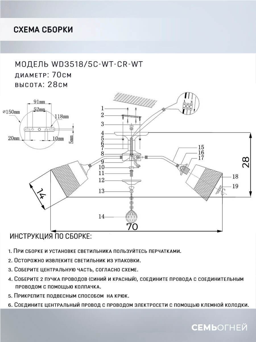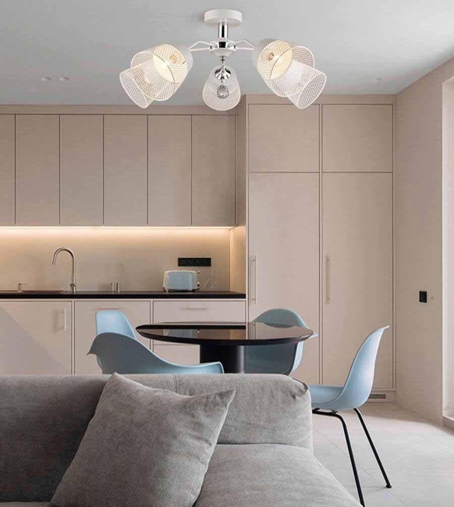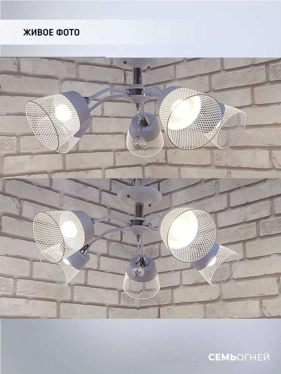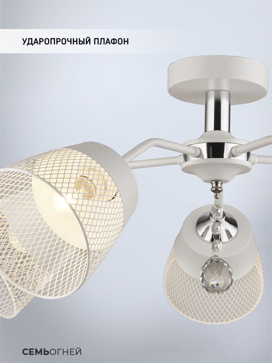 Оригинальная модель WD3518/5C-WT-CR-WT от российской компании Seven Fires относится к коллекции Donetella и отлично подойдет для установки на низкий потолок кухни, оформленной в стиле модерн. Потолочная люстра Seven Fires Donetella WD3518/5C-WT-CR-WT с плафонами-конусами осветит помещение площадью 15 кв. м. Производитель Seven Fires рекомендует использовать для устройства лампы накаливания с цоколем E27 и мощностью 60 W. Прибор произведен с использованием материала: металл и может использоваться для натяжного потолка. Основным цветом товара является Белый. Потолочная люстра WD3518/5C-WT-CR-WT продается по цене 3740 руб. Торопитесь сделать заказ в интернет-магазине Top Otdelka.