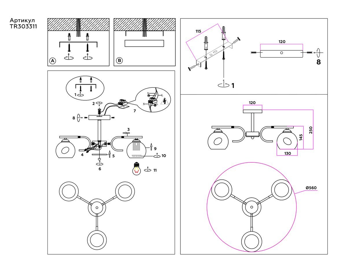 Неповторимая модель TR303311 от российской компании Ambrella light относится к коллекции Traditional Modern и отлично подойдет для установки на низкий потолок кухни, оформленной в стиле модерн. Потолочная люстра Ambrella light Traditional Modern TR303311 с плафонами в виде шаров осветит помещение площадью 10 кв. м. Производитель Ambrella light рекомендует использовать для устройства лампы накаливания с цоколем E27 и мощностью 60 W. Прибор произведен с использованием материалов: стекло и металл и может использоваться для натяжного потолка. Основным цветом товара является Белый и Черный. Потолочная люстра TR303311 продается по цене 5794 руб. Торопитесь сделать заказ в интернет-магазине Top Otdelka.