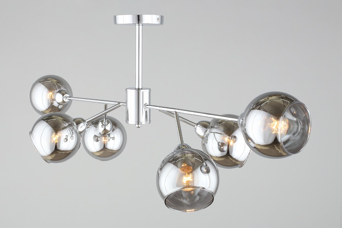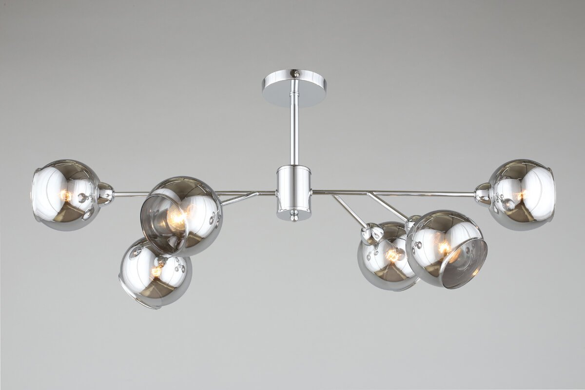 Необыкновенная модель OML-94107-06 от китайской компании Omnilux относится к коллекции Ellera и отлично подойдет для установки на потолок в гостиной, оформленной в стиле лофт. Потолочная люстра Omnilux Ellera OML-94107-06 с плафонами в виде шаров осветит помещение площадью 13.3 кв. м. Производитель Omnilux рекомендует использовать для устройства лампы накаливания с цоколем E14 и мощностью 40 W. Прибор произведен с использованием материалов: стекло и металл и может использоваться для натяжного потолка. Основным цветом товара является Дымчатый и Серебристо-стальной. Потолочная люстра OML-94107-06 продается по цене 7260 руб. Торопитесь сделать заказ в интернет-магазине Top Otdelka.