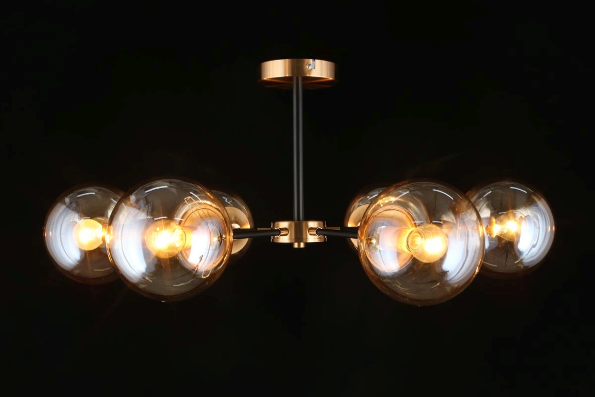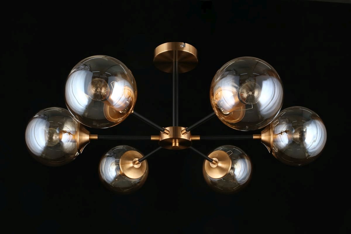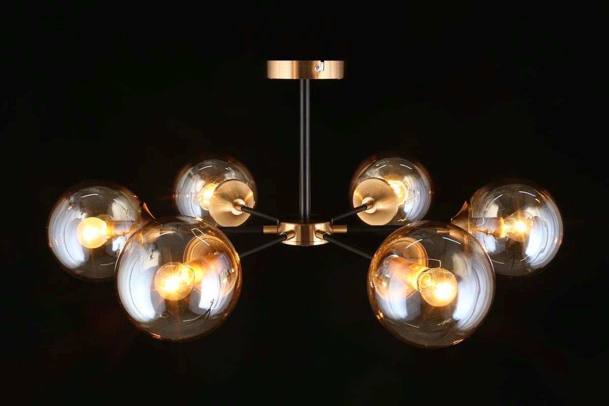 Интересная модель APL.909.07.06 от польской компании Aployt относится к коллекции Beta и отлично подойдет для установки на низкий потолок спальни, оформленной в современном стиле. Потолочная люстра Aployt Beta APL.909.07.06 с плафонами в виде шаров осветит помещение площадью 16 кв. м. Производитель Aployt рекомендует использовать для устройства лампы накаливания с цоколем E14 и мощностью 40 W. Прибор произведен с использованием материалов: стекло и металл и может использоваться для натяжного потолка. Основным цветом товара является Янтарный и Черный. Потолочная люстра APL.909.07.06 продается по цене 9680 руб. Торопитесь сделать заказ в интернет-магазине Top Otdelka.