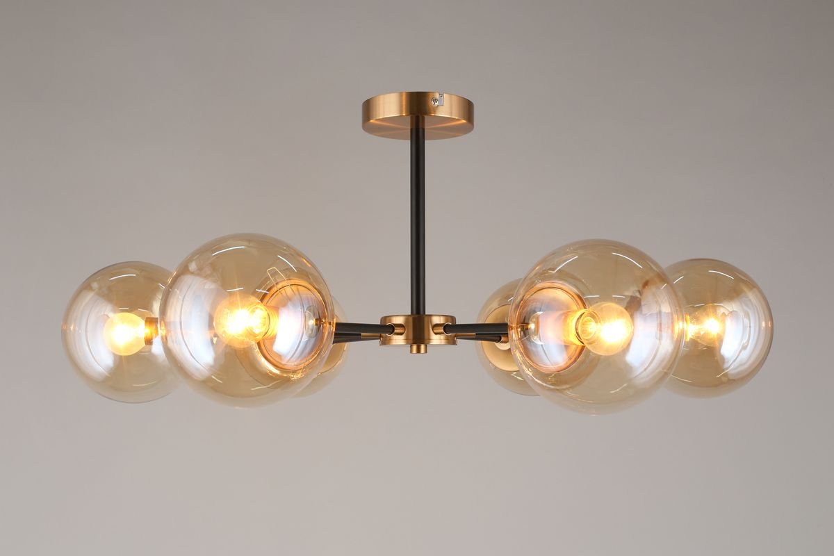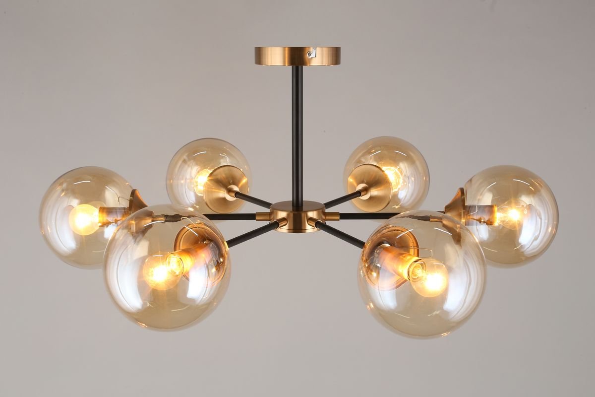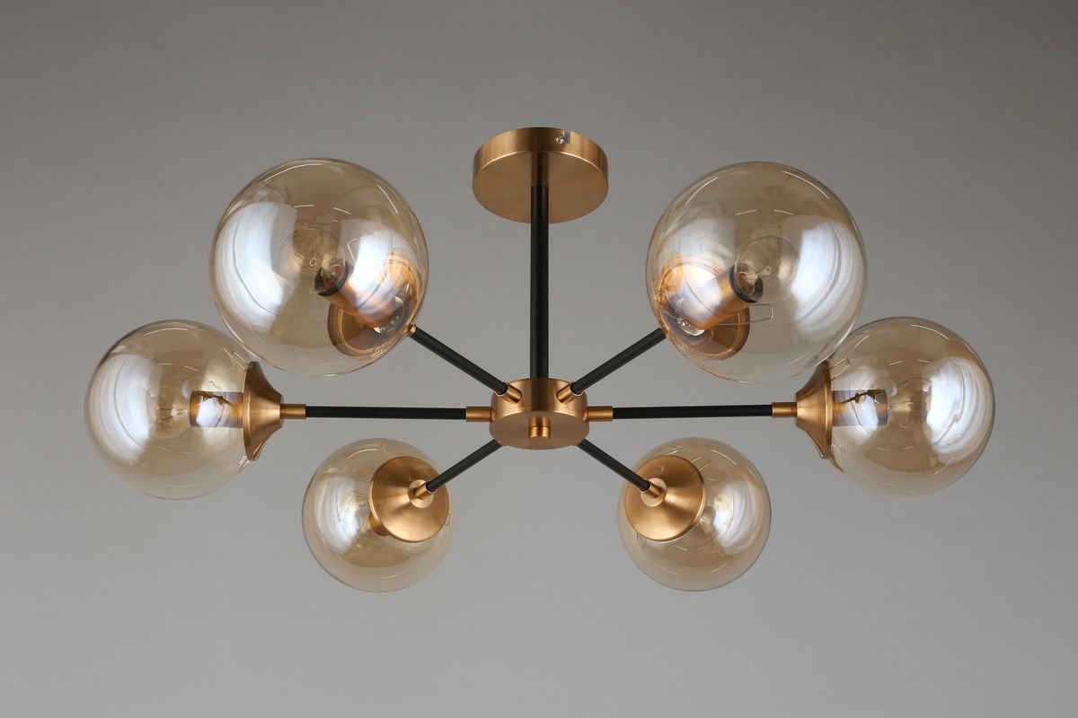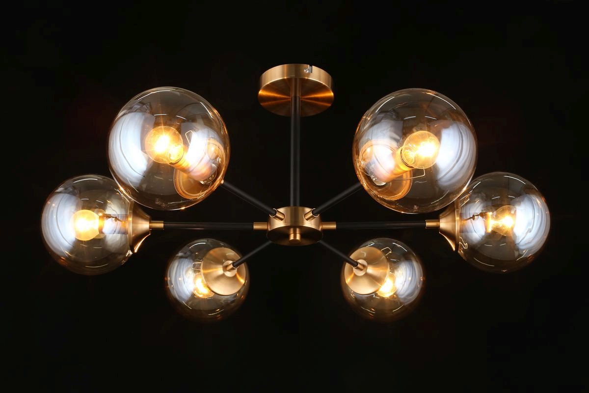 Интересная модель APL.909.07.06 от польской компании Aployt относится к коллекции Beta и отлично подойдет для установки на низкий потолок спальни, оформленной в современном стиле. Потолочная люстра Aployt Beta APL.909.07.06 с плафонами в виде шаров осветит помещение площадью 16 кв. м. Производитель Aployt рекомендует использовать для устройства лампы накаливания с цоколем E14 и мощностью 40 W. Прибор произведен с использованием материалов: стекло и металл и может использоваться для натяжного потолка. Основным цветом товара является Янтарный и Черный. Потолочная люстра APL.909.07.06 продается по цене 9680 руб. Торопитесь сделать заказ в интернет-магазине Top Otdelka.