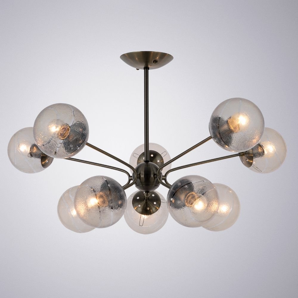 Неповторимая модель A4164PL-10AB от итальянской компании Arte Lamp относится к коллекции Meissa и отлично подойдет для установки на потолок в гостиной, оформленной в современном стиле. Подвесная люстра Arte Lamp Meissa A4164PL-10AB с плафонами в виде шаров осветит помещение площадью 20 кв. м. Производитель Arte Lamp рекомендует использовать для устройства лампы накаливания с цоколем E27 и мощностью 40 W. Прибор произведен с использованием материалов: стекло и металл и может использоваться для натяжного потолка. Основным цветом товара является Античная бронза и Прозрачный. Подвесная люстра A4164PL-10AB продается по цене 5350 руб. Торопитесь сделать заказ в интернет-магазине Top Otdelka.