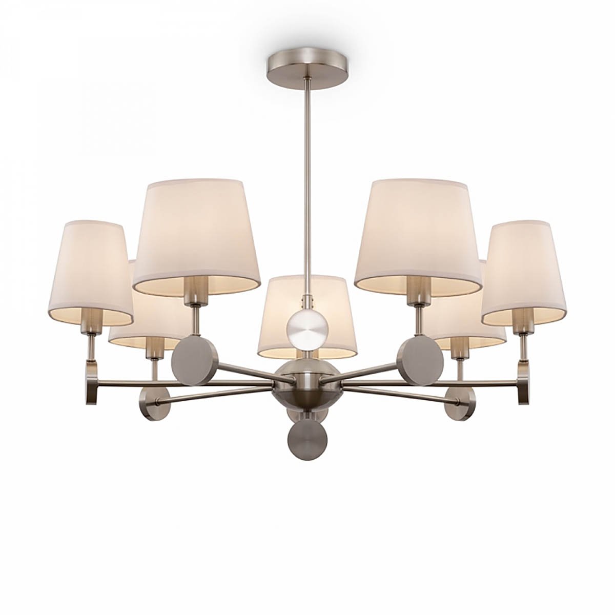 Оригинальная модель FR2028PL-07N от немецкой компании Freya относится к коллекции Soho и отлично подойдет для установки на потолок спальни, оформленной в стиле неоклассики. Подвесная люстра Freya Soho FR2028PL-07N с плафонами-конусами осветит помещение площадью 18.7 кв. м. Производитель Freya рекомендует использовать для устройства лампы накаливания с цоколем E14 и мощностью 40 W. Прибор произведен с использованием материалов: текстиль, металл и ткань и может использоваться для натяжного потолка. Основным цветом товара является Белый и Никелевый. Подвесная люстра FR2028PL-07N продается по цене 16980 руб. Торопитесь сделать заказ в интернет-магазине Top Otdelka.