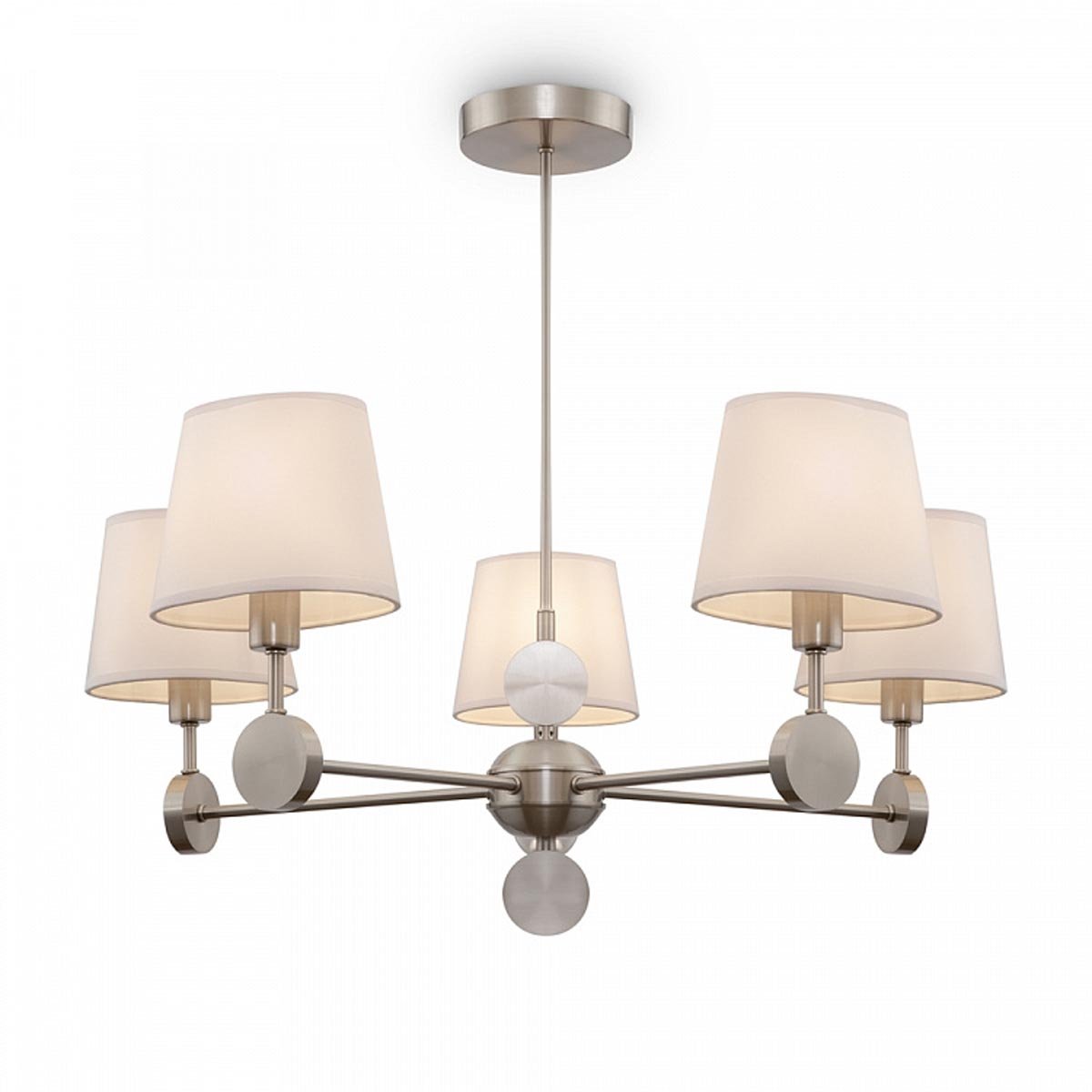 Оригинальная модель FR2028PL-05N от немецкой компании Freya относится к коллекции Soho и отлично подойдет для установки на потолок спальни, оформленной в стиле неоклассики. Подвесная люстра Freya Soho FR2028PL-05N с плафонами-конусами осветит помещение площадью 13.3 кв. м. Производитель Freya рекомендует использовать для устройства лампы накаливания с цоколем E14 и мощностью 40 W. Прибор произведен с использованием материалов: текстиль, металл и ткань и может использоваться для натяжного потолка. Основным цветом товара является Белый и Никелевый. Подвесная люстра FR2028PL-05N продается по цене 12980 руб. Торопитесь сделать заказ в интернет-магазине Top Otdelka.