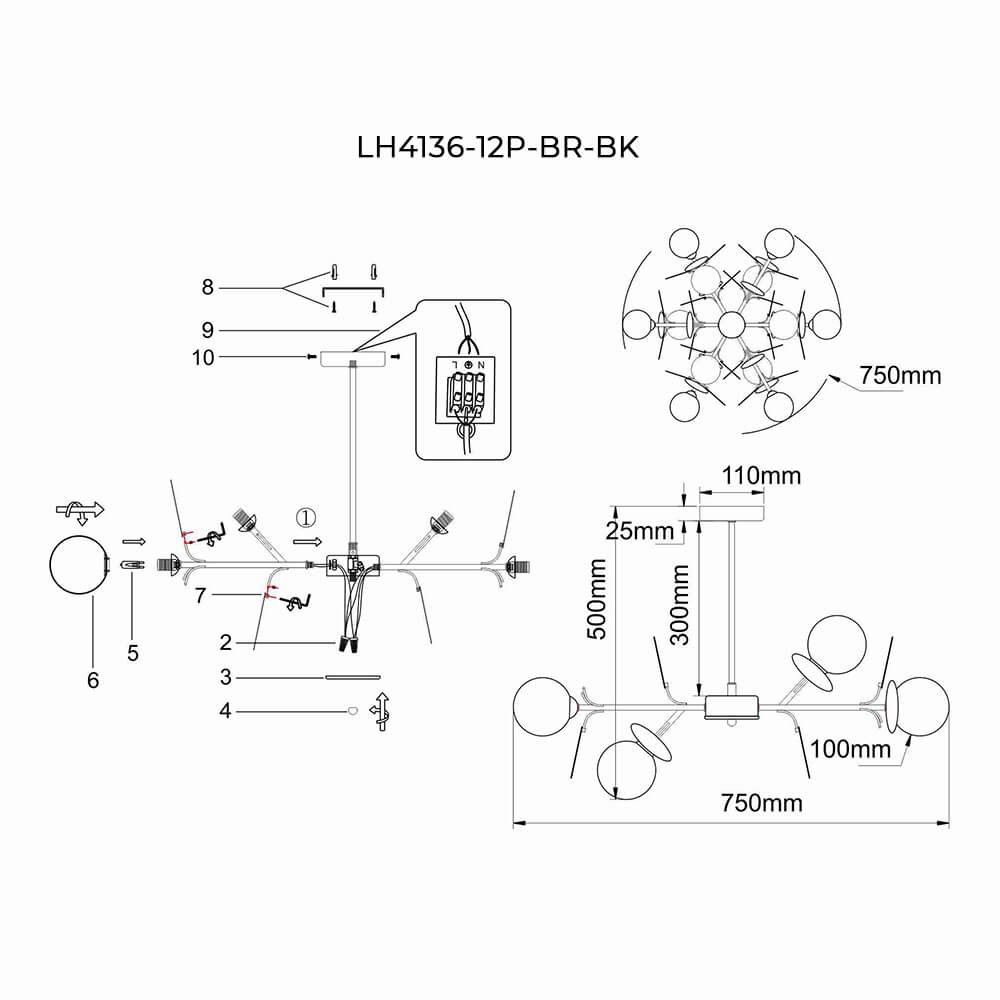 Незаурядная модель LH4136/12P-BR-BK от российской компании Lumien Hall относится к коллекции Ilmari и отлично подойдет для установки на потолок спальни, оформленной в дизайнерском стиле. Подвесная люстра Lumien Hall Ilmari LH4136/12P-BR-BK с плафонами в виде шаров осветит помещение площадью 18 кв. м. Производитель Lumien Hall рекомендует использовать для устройства галогеновые лампы с цоколем G9 и мощностью 25 W. Прибор произведен с использованием материалов: стекло и металл и может использоваться для натяжного потолка. Основным цветом товара является Черный, Античная бронза и Белый. Подвесная люстра LH4136/12P-BR-BK продается по цене 22698 руб. Торопитесь сделать заказ в интернет-магазине Top Otdelka.