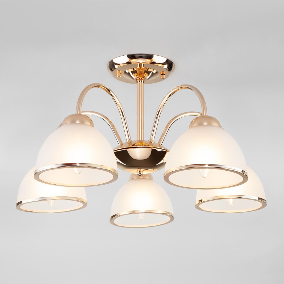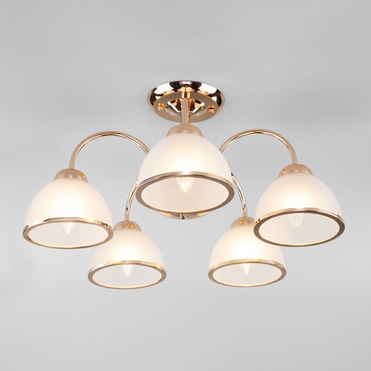 Изящная модель 30174/5 золото от российской компании Eurosvet относится к коллекции Shanon и отлично подойдет для установки на низкий потолок кухни, оформленной в стиле модерн. Потолочная люстра Eurosvet Shanon 30174/5 золото с полукруглыми плафонами осветит помещение площадью 11.1 кв. м. Производитель Eurosvet рекомендует использовать для устройства лампы накаливания с цоколем E27 и мощностью 40 W. Прибор произведен с использованием материалов: стекло и металл и может использоваться для натяжного потолка. Основным цветом товара является Белый и Золотой. Потолочная люстра 30174/5 золото продается по цене 8640 руб. Торопитесь сделать заказ в интернет-магазине Top Otdelka.