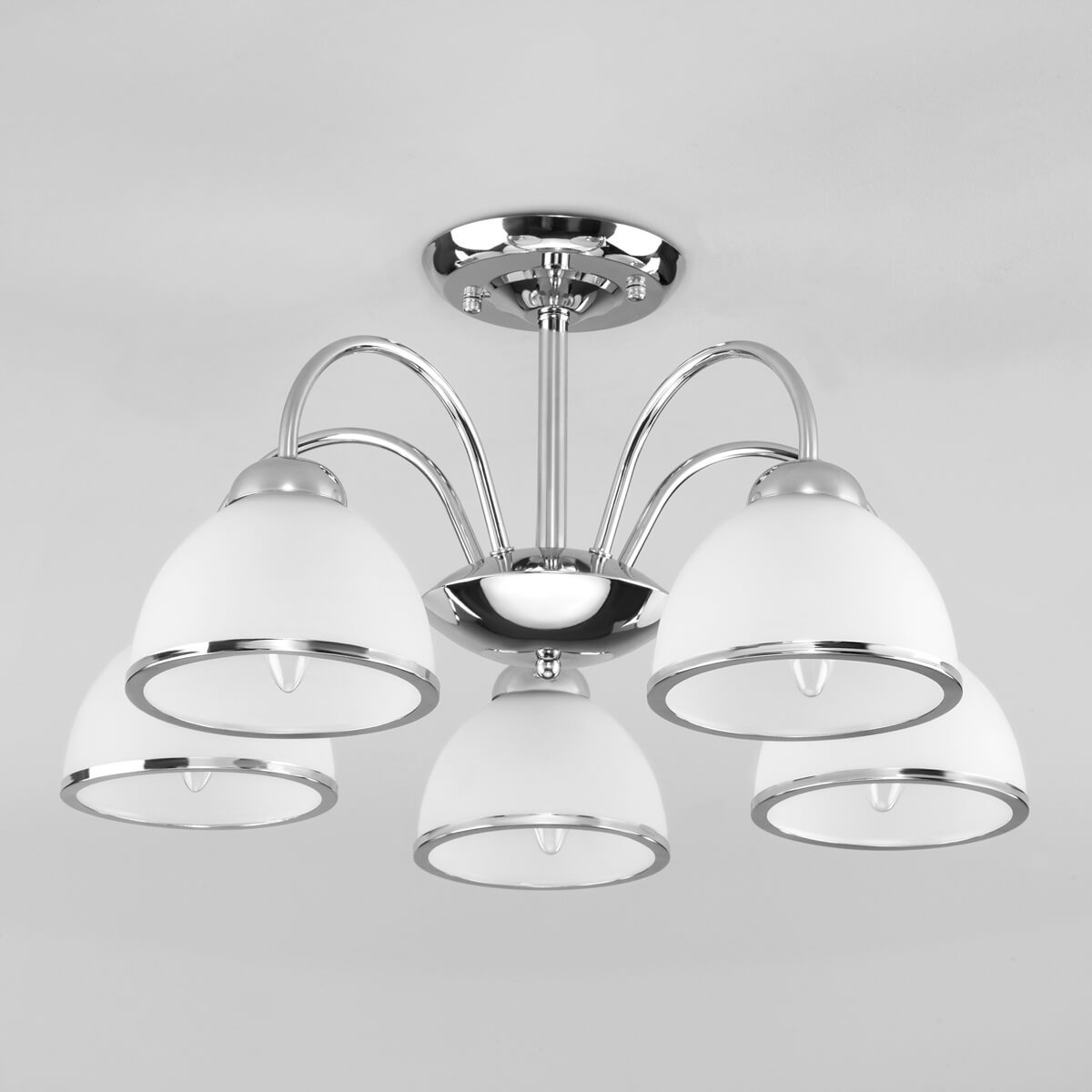 Уникальная модель 30174/5 хром от российской компании Eurosvet относится к коллекции Shanon и отлично подойдет для установки на низкий потолок кухни, оформленной в стиле модерн. Потолочная люстра Eurosvet Shanon 30174/5 хром с полукруглыми плафонами осветит помещение площадью 11.1 кв. м. Производитель Eurosvet рекомендует использовать для устройства лампы накаливания с цоколем E27 и мощностью 40 W. Прибор произведен с использованием материалов: стекло и металл и может использоваться для натяжного потолка. Основным цветом товара является Белый и Серебристо-стальной. Потолочная люстра 30174/5 хром продается по цене 8640 руб. Торопитесь сделать заказ в интернет-магазине Top Otdelka.