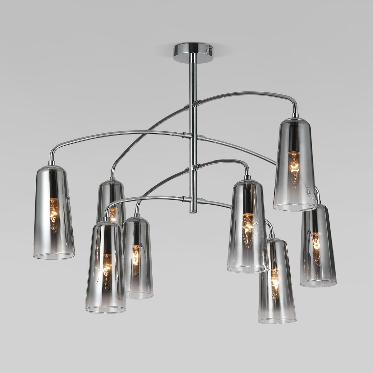 Неподражаемая модель 70137/8 хром от российской компании Eurosvet относится к коллекции Omber и отлично подойдет для установки на потолок в гостиной, оформленной в стиле хай-тек. Подвесная люстра Eurosvet Omber 70137/8 хром с плафонами-конусами осветит помещение площадью 16 кв. м. Производитель Eurosvet рекомендует использовать для устройства лампы накаливания с цоколем E14 и мощностью 60 W. Прибор произведен с использованием материалов: стекло и металл и может использоваться для натяжного потолка. Основным цветом товара является Дымчатый и Серебристо-стальной. Подвесная люстра 70137/8 хром продается по цене 27100 руб. Торопитесь сделать заказ в интернет-магазине Top Otdelka.