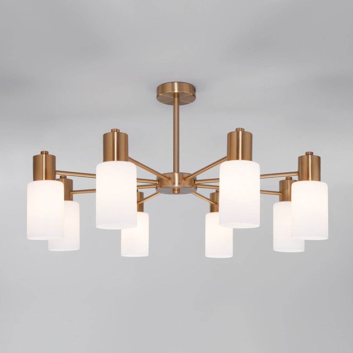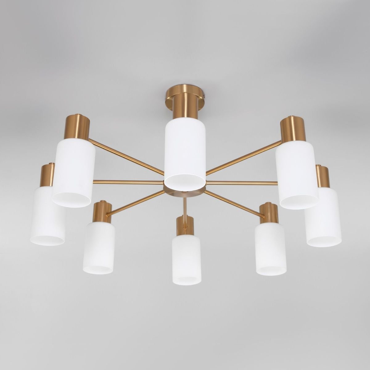 Поразительная модель 70160/8 латунь от российской компании Eurosvet относится к коллекции Vegga и отлично подойдет для установки на потолок спальни, оформленной в стиле минимализм. Потолочная люстра Eurosvet Vegga 70160/8 латунь с цилиндрическими плафонами осветит помещение площадью 14 кв. м. Производитель Eurosvet рекомендует использовать для устройства лампы накаливания с цоколем E14 и мощностью 60 W. Прибор произведен с использованием материалов: стекло и металл и может использоваться для натяжного потолка. Основным цветом товара является Белый и Латунный. Потолочная люстра 70160/8 латунь продается по цене 17500 руб. Торопитесь сделать заказ в интернет-магазине Top Otdelka.