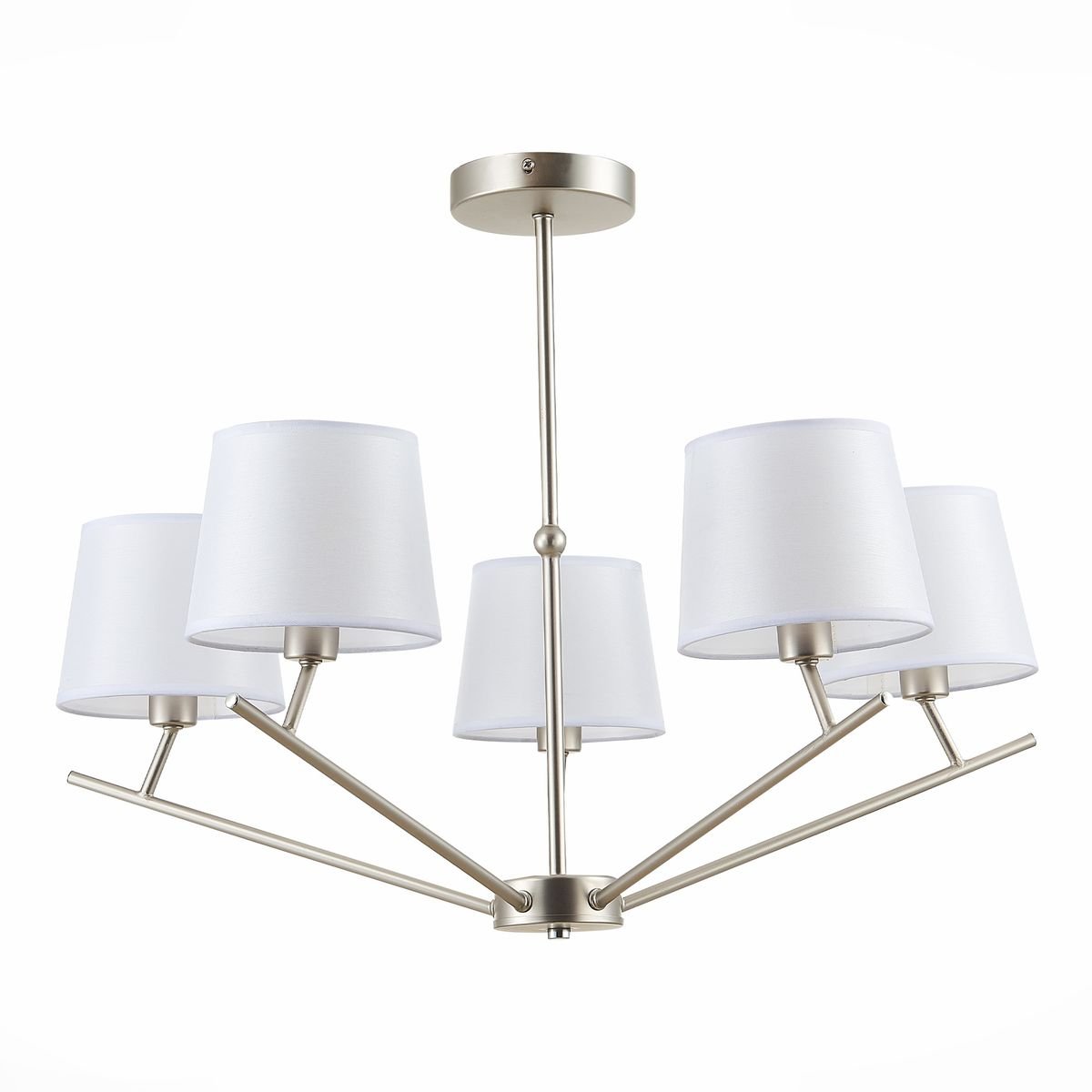 Выдающаяся модель SLE300102-05 от итальянской компании Evoluce относится к коллекции Denice и отлично подойдет для установки на потолок спальни, оформленной в современном стиле. Потолочная люстра Evoluce Denice SLE300102-05 с плафонами-конусами осветит помещение площадью 10 кв. м. Производитель Evoluce рекомендует использовать для устройства лампы накаливания с цоколем E14 и мощностью 40 W. Прибор произведен с использованием материалов: текстиль, металл и ткань и может использоваться для натяжного потолка. Основным цветом товара является Никелевый и Белый. Потолочная люстра SLE300102-05 продается по цене 10700 руб. Торопитесь сделать заказ в интернет-магазине Top Otdelka.