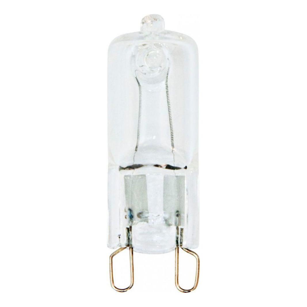 Галогеновая лампочка в форме колбы с цоколем G9 и размерами 53 мм по высоте обладает мощностью в 40 W, благодаря чему она может осветить 5 кв. м. Изделие рассчитано на использование в сети с переменным напряжением в 220-240В.