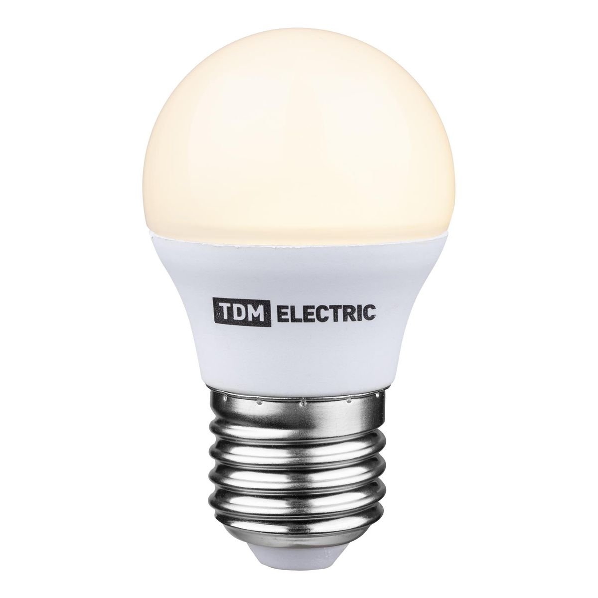 Светодиодная лампочка в форме шара с цоколем E27 и размерами 83 мм по высоте и диаметром в 45 мм обладает мощностью в 6 W, благодаря чему она может осветить 2 кв. м. Цветовая температура – 3000 К, т.е. теплый свет, создающий атмосферу уюта. Изделие рассчитано на использование в сети с переменным напряжением в 220-240В. Лампа может изменять силу свечения при использовании в технике, поддерживающей технологию диммирования.