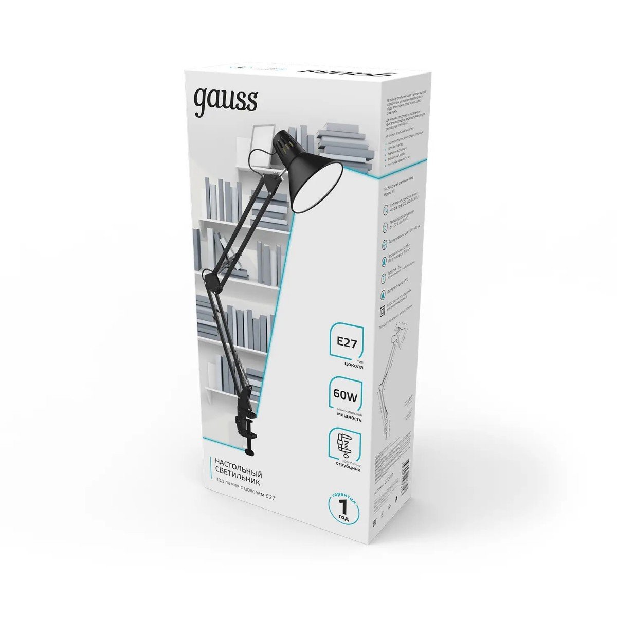 Незаурядная модель GT0012 от российской компании Gauss и отлично подойдет для установки на стол офиса, оформленном в современном стиле. Настольная лампа Gauss GT0012 осветит помещение площадью 4 кв. м. Производитель Gauss рекомендует использовать для устройства лампы накаливания с цоколем E27 и мощностью 60 W. Прибор произведен с использованием материала: металл. Основным цветом товара является Черный. Настольная лампа GT0012 продается по цене 2430 руб. Торопитесь сделать заказ в интернет-магазине Top Otdelka.