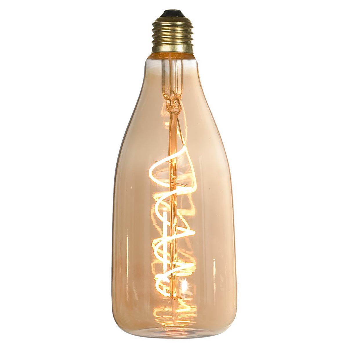 Ретро лампочка в форме колбы с цоколем E27 и размерами 210 мм по высоте и диаметром в 80 мм обладает мощностью в 4 W, благодаря чему она может осветить 0.3 кв. м. Цветовая температура – 2200 К, т.е. теплый свет, создающий атмосферу уюта. Изделие рассчитано на использование в сети с переменным напряжением в 220-240В.