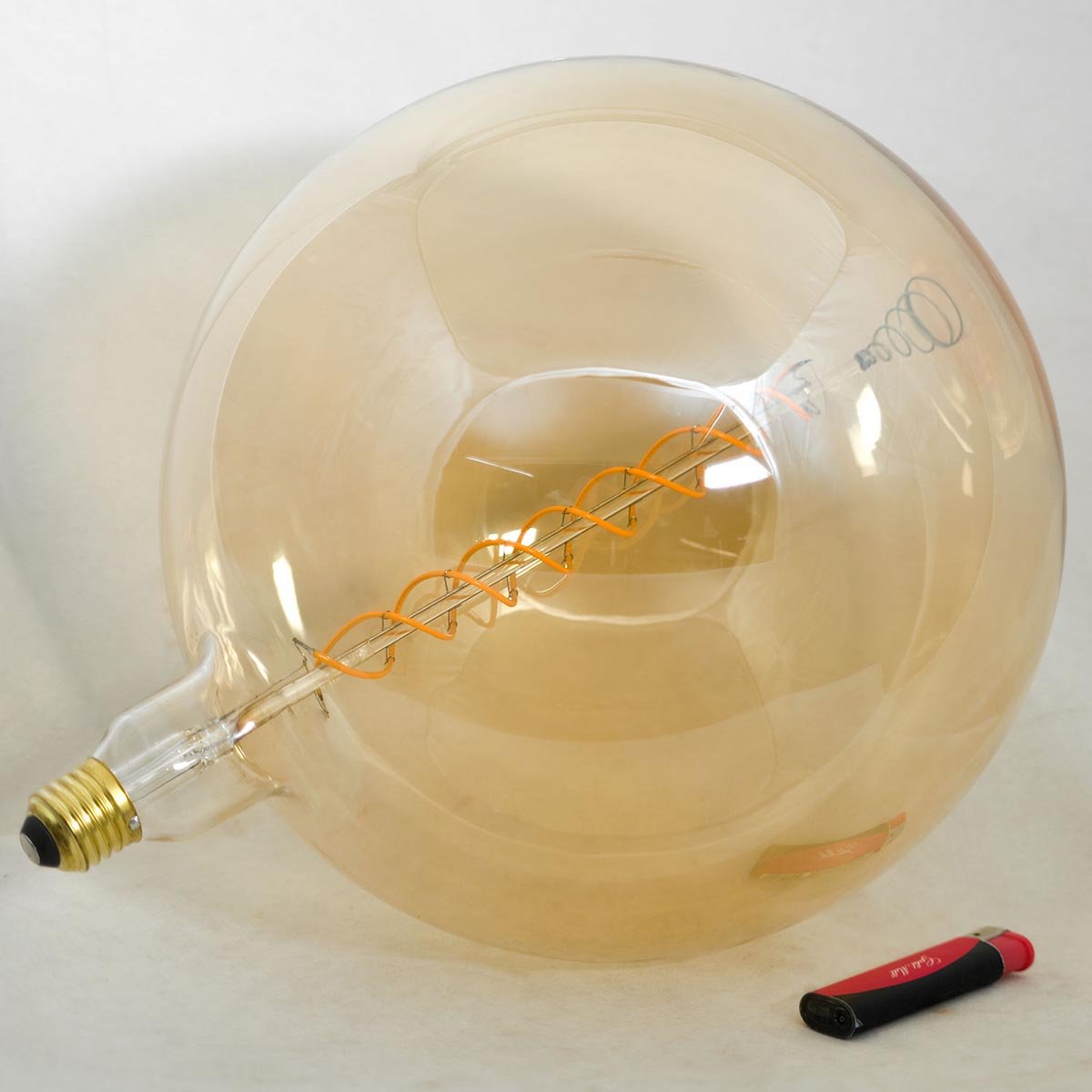 Ретро лампочка в форме шара с цоколем E27 и размерами 330 мм по высоте и диаметром в 260 мм обладает мощностью в 5 W, благодаря чему она может осветить 0.3 кв. м. Цветовая температура – 2200 К, т.е. теплый свет, создающий атмосферу уюта. Изделие рассчитано на использование в сети с переменным напряжением в 220-240В.
