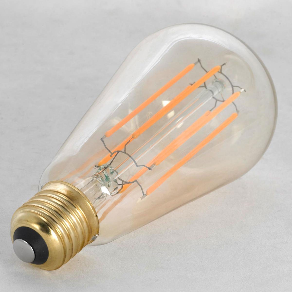 Ретро лампочка в форме колбы с цоколем E27 и размерами 140 мм по высоте и диаметром в 64 мм обладает мощностью в 6 W, благодаря чему она может осветить 0.4 кв. м. Цветовая температура – 2700 К, т.е. теплый свет, создающий атмосферу уюта. Изделие рассчитано на использование в сети с переменным напряжением в 220-240В.