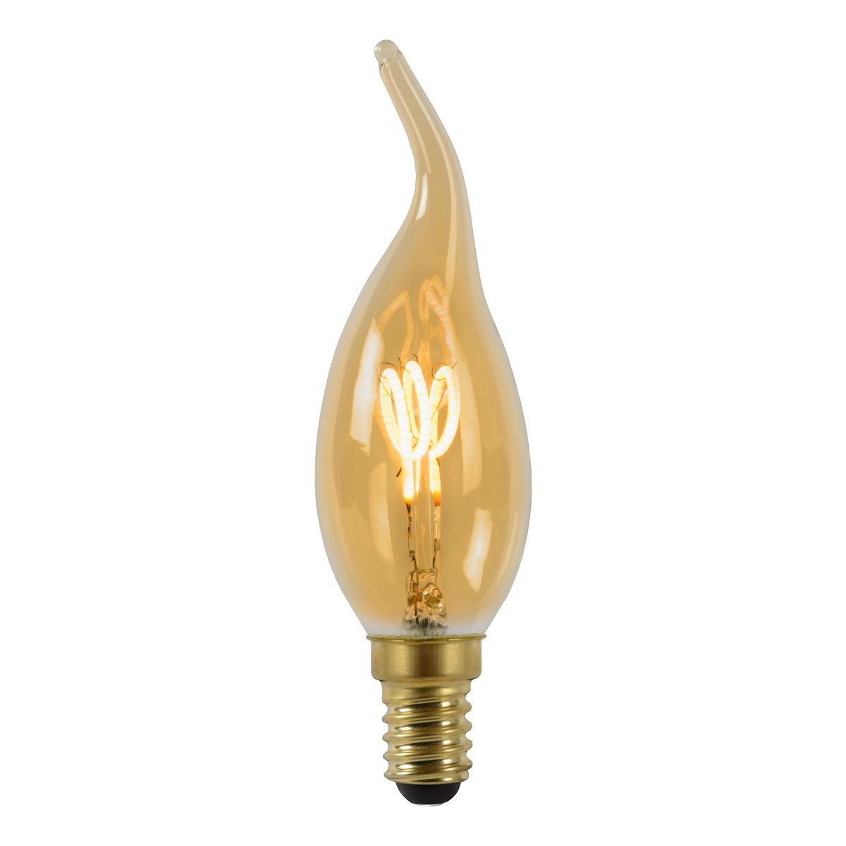 Светодиодная лампочка в форме свечи на ветру с цоколем E14 и размерами 115 мм по высоте и диаметром в 35 мм обладает мощностью в 3 W, благодаря чему она может осветить 1 кв. м. Цветовая температура – 2200 К, т.е. теплый свет, создающий атмосферу уюта. Изделие рассчитано на использование в сети с переменным напряжением в 220-240В.