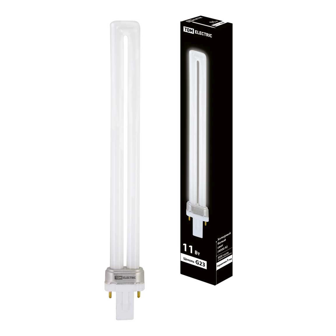 Энергосберегающая лампочка прямосторонней формы с цоколем G23 и диаметром в 27 мм обладает мощностью в 11 W, благодаря чему она может осветить 2.2 кв. м. Цветовая температура – 4000 К, т.е. белый свет, подходящий для рабочего настроя (не рекомендуется для детской комнаты). Изделие рассчитано на использование в сети с переменным напряжением в 220-240В.