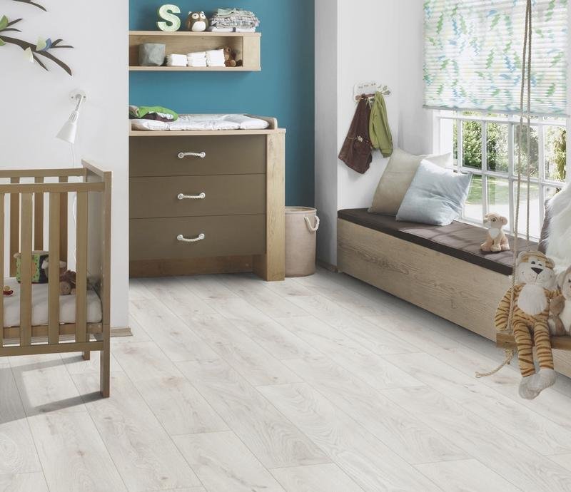 Однополосный ламинат 33 класса Vintage в декоре Дуб Шантилли (Chantilly Oak) белого цвета от производителя Kronospan толщиной 10 мм. Планки на замковой системе 1clic2go с фаской по периметру. Ламинированное напольное покрытие Vintage Дуб Шантилли (5953) продаётся упаковками по 7 планок размером 192×1285 мм общей площадью 1.727 м² .
