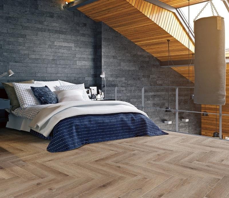 Влагостойкий виниловый SPC ламинат 42 класса под Английскую ёлочку Herringbone ZH-82021-7 в декоре Дуб Монпелье (Montpellier Oak) светло-коричневого цвета от Российского производителя Cronafloor. Планки форматом 128×640 мм и толщиной 4,5 мм снабжены фаско Замковый способ монтажа позволяет быстро и качественно произвести укладку напольного покрытия. Защитный слой Extreme Protection толщиной в 0,30 мм надёжно защищает поверхность от механических повреждений, а инновационная замковая система Double Click препятствует проникновению влаги в стыках. Основа на каменно-полимерном композите способна выдерживать высокие нагрузки.
