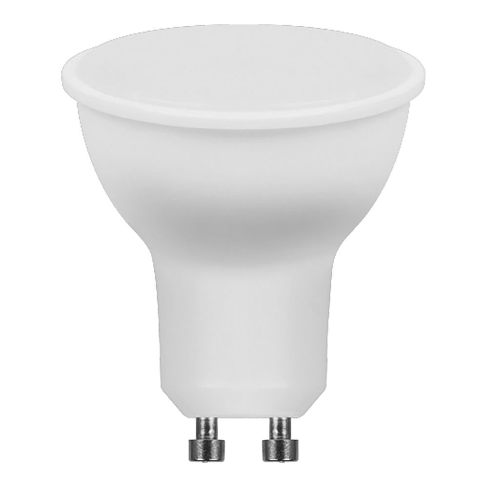 Светодиодная лампочка в форме полусферы с цоколем GU10 и размерами 57 мм по высоте и диаметром в 50 мм обладает мощностью в 13 W, благодаря чему она может осветить 4.3 кв. м. Цветовая температура – 2700 К, т.е. теплый свет, создающий атмосферу уюта. Изделие рассчитано на использование в сети с переменным напряжением в 220-240В.
