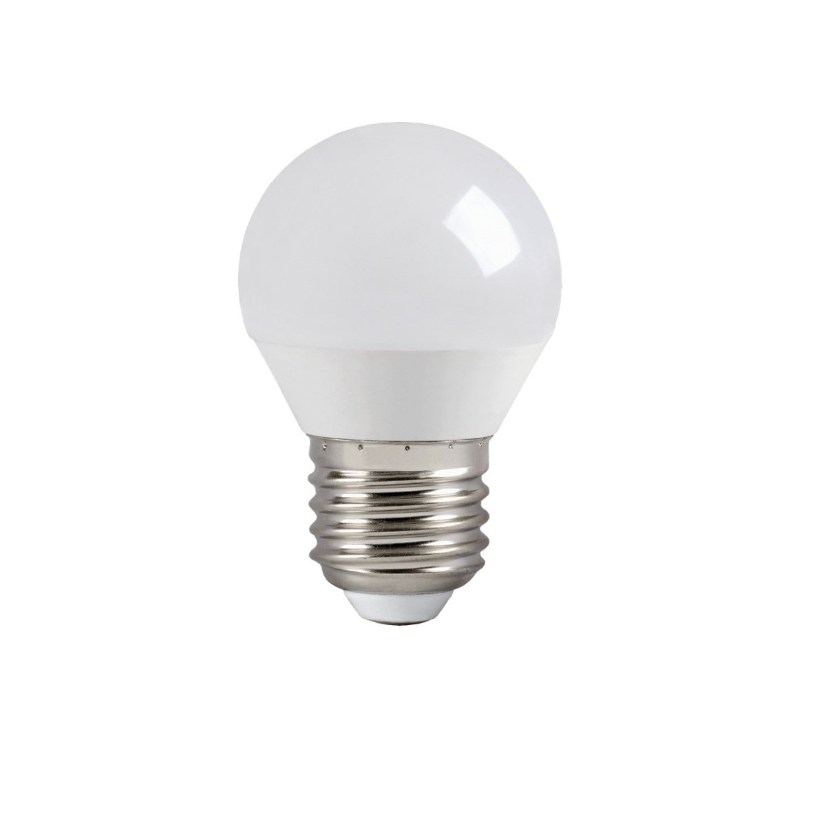 Светодиодная лампочка в форме шара с цоколем E27 и диаметром в 45 мм обладает мощностью в 5 W, благодаря чему она может осветить 1.7 кв. м. Цветовая температура – 4000 К, т.е. белый свет, подходящий для рабочего настроя (не рекомендуется для детской комнаты). Изделие рассчитано на использование в сети с переменным напряжением в 220-240В.