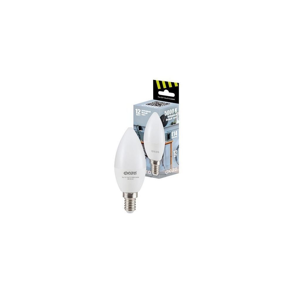 Светодиодная лампочка в форме свечи с цоколем E14 и размерами 100 мм по высоте и диаметром в 37 мм обладает мощностью в 12 W, благодаря чему она может осветить 4 кв. м. Цветовая температура – 5000 К, т.е. белый свет, подходящий для рабочего настроя (не рекомендуется для детской комнаты). Изделие рассчитано на использование в сети с переменным напряжением в 220-240В.