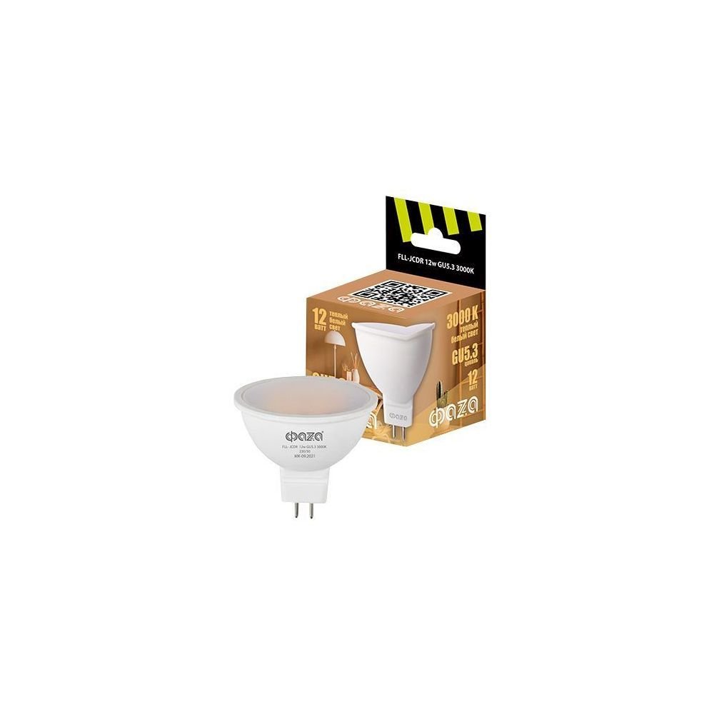 Светодиодная лампочка в форме полусферы с цоколем GU5.3 и размерами 52 мм по высоте и диаметром в 50 мм обладает мощностью в 12 W, благодаря чему она может осветить 4 кв. м. Цветовая температура – 3000 К, т.е. теплый свет, создающий атмосферу уюта. Изделие рассчитано на использование в сети с переменным напряжением в 220-240В.