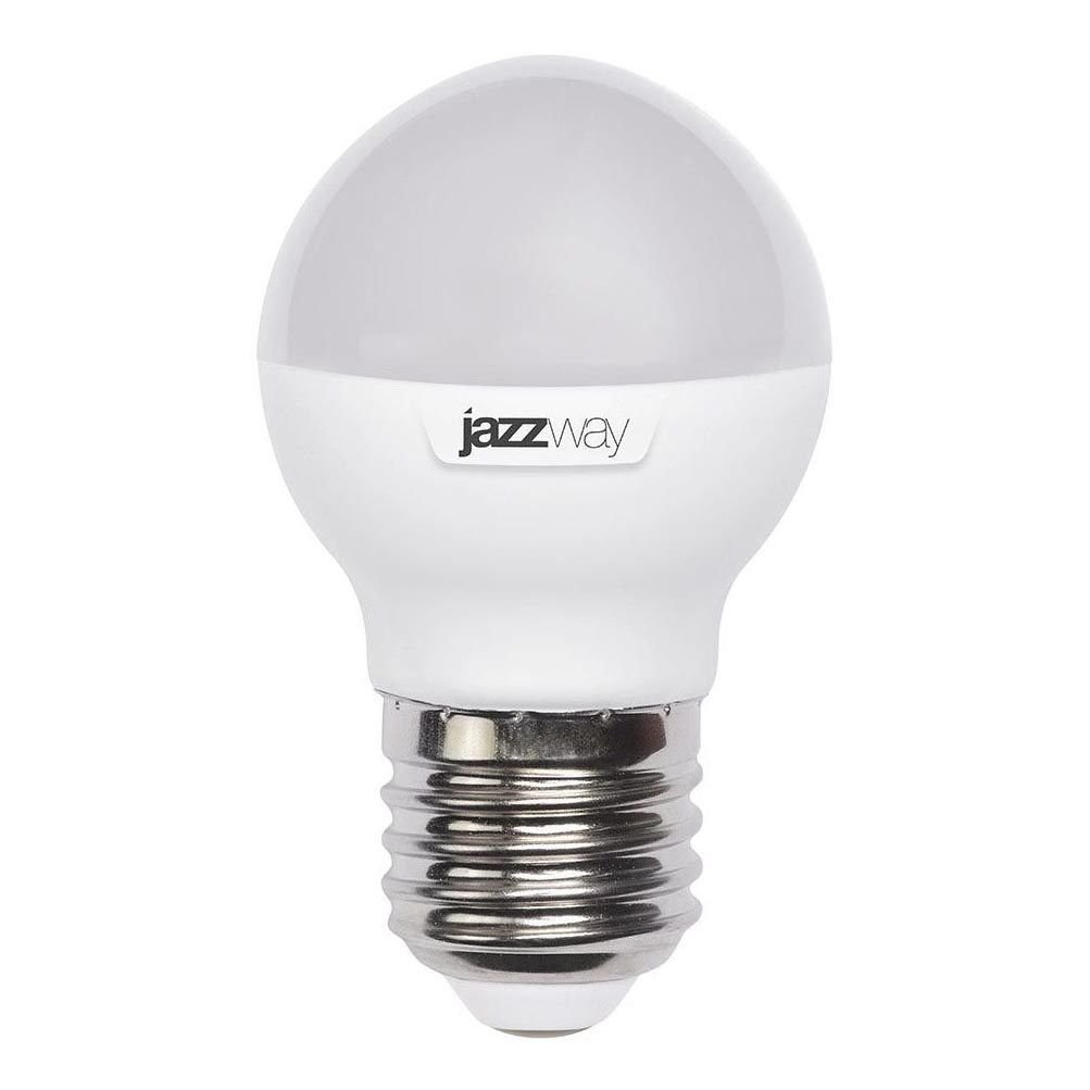 Светодиодная лампочка в форме шара с цоколем E27 и размерами 75 мм по высоте и диаметром в 45 мм обладает мощностью в 7 W, благодаря чему она может осветить 2.3 кв. м. Цветовая температура – 5000 К, т.е. белый свет, подходящий для рабочего настроя (не рекомендуется для детской комнаты). Изделие рассчитано на использование в сети с переменным напряжением в 220-240В.