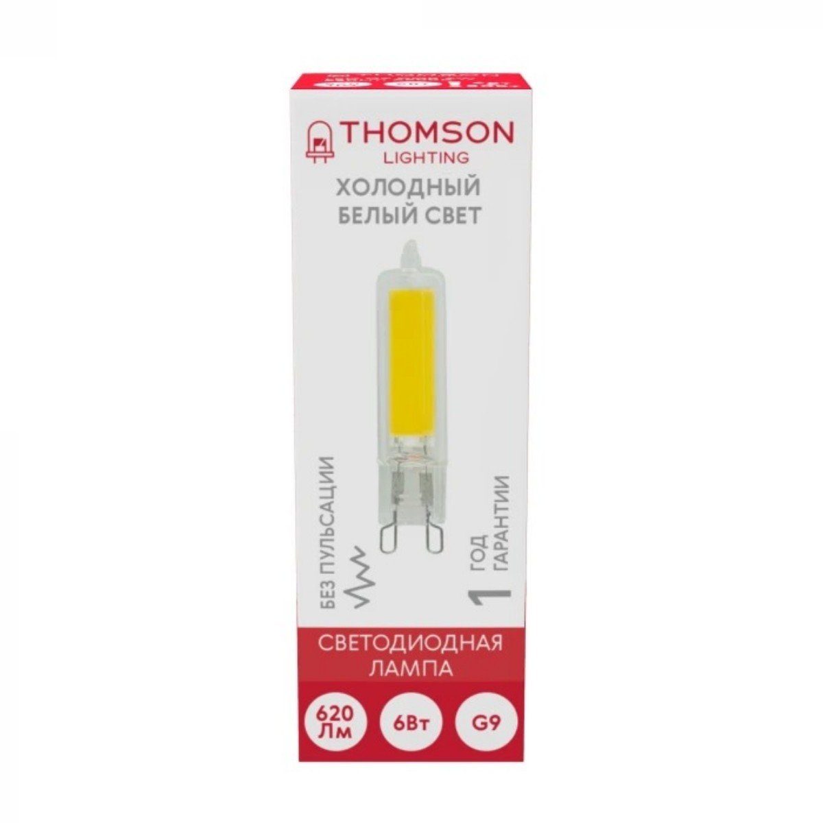 Светодиодная лампочка прямосторонней формы с цоколем G9 и размерами 55 мм по высоте обладает мощностью в 6 W, благодаря чему она может осветить 2 кв. м. Цветовая температура – 6500 К, т.е. холодный свет синего оттенка (не рекомендуется для применения на кухне, так как искажает цвет готовых блюд). Изделие рассчитано на использование в сети с переменным напряжением в 220В.